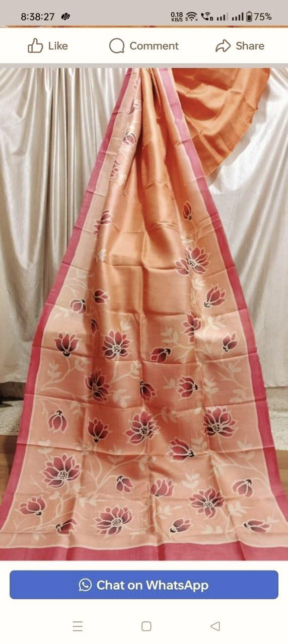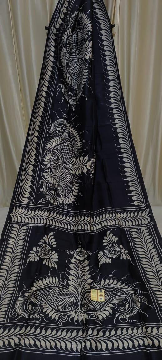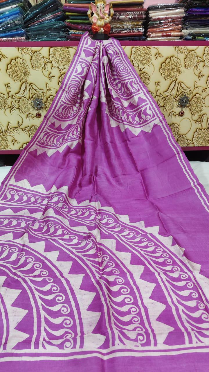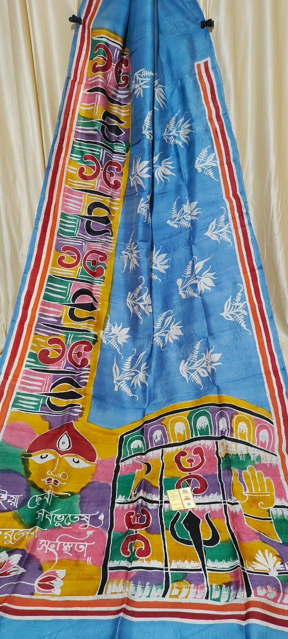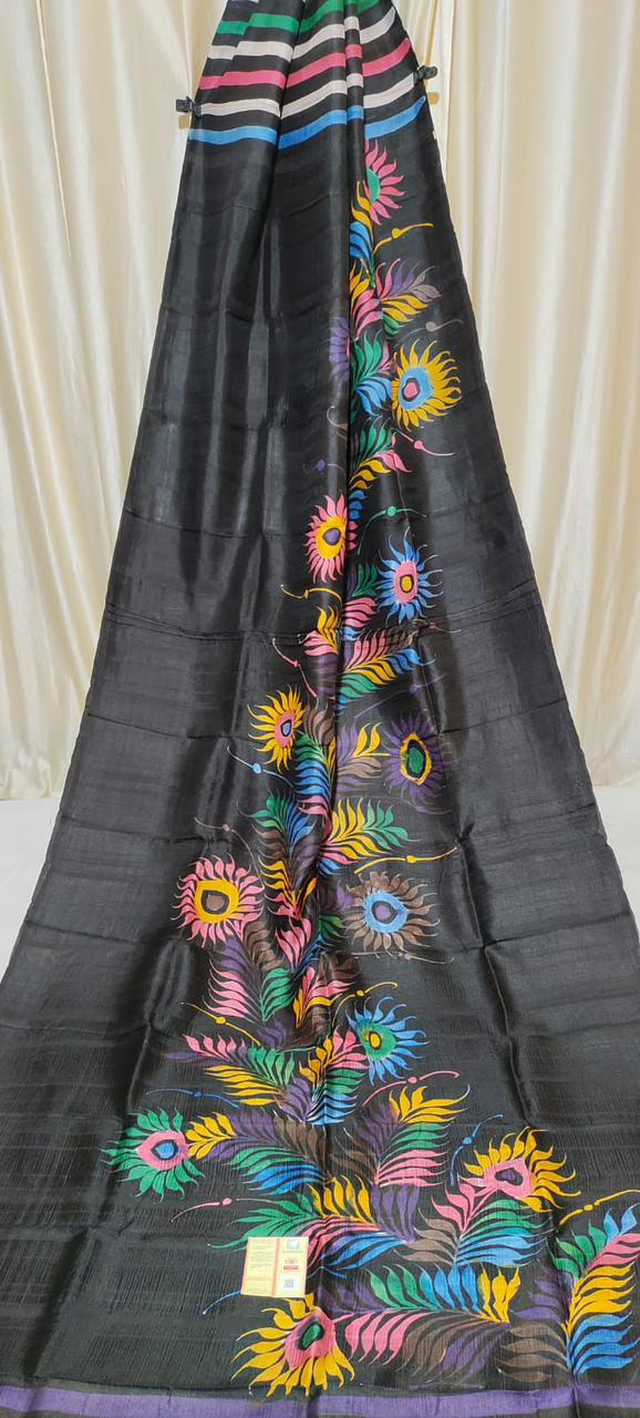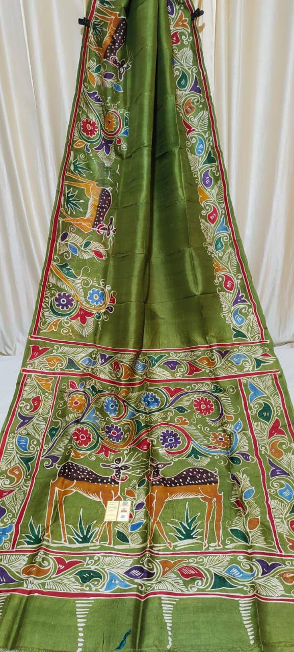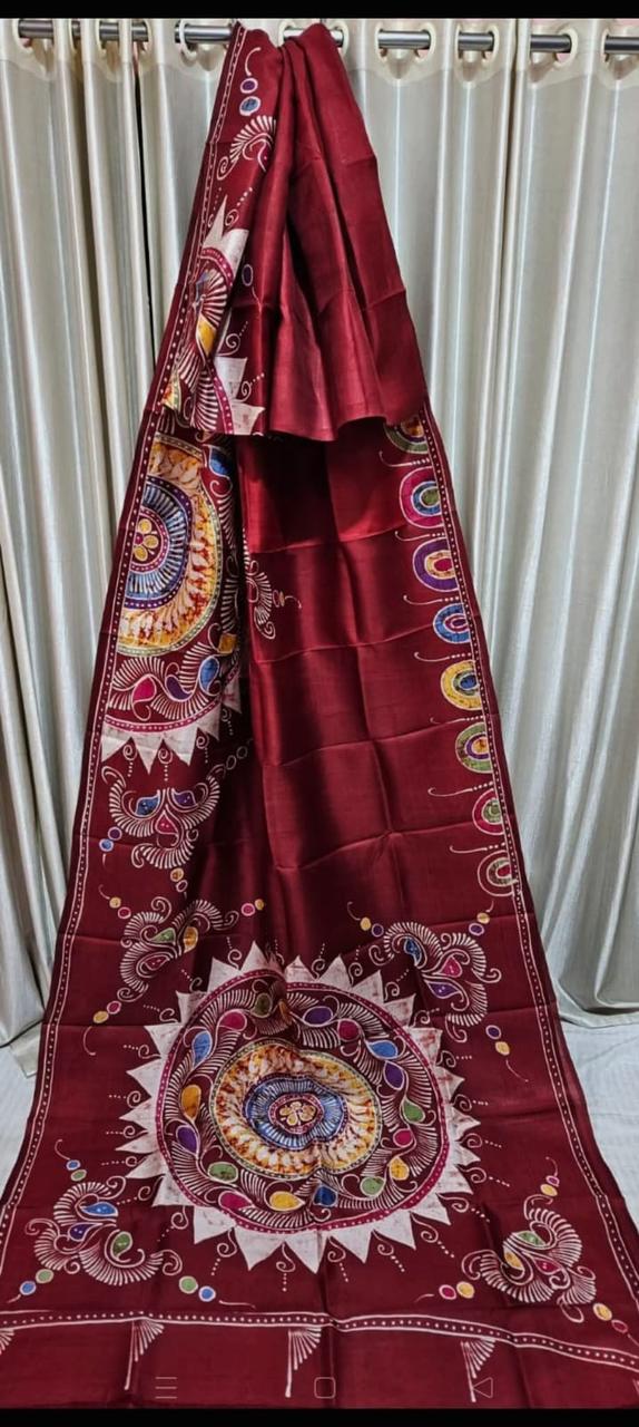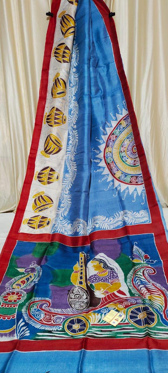 Pure Tasar Ghicha madhubani hand painting work silk saree with BP
