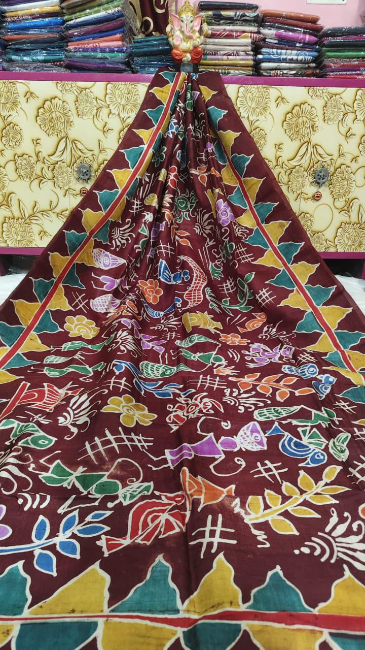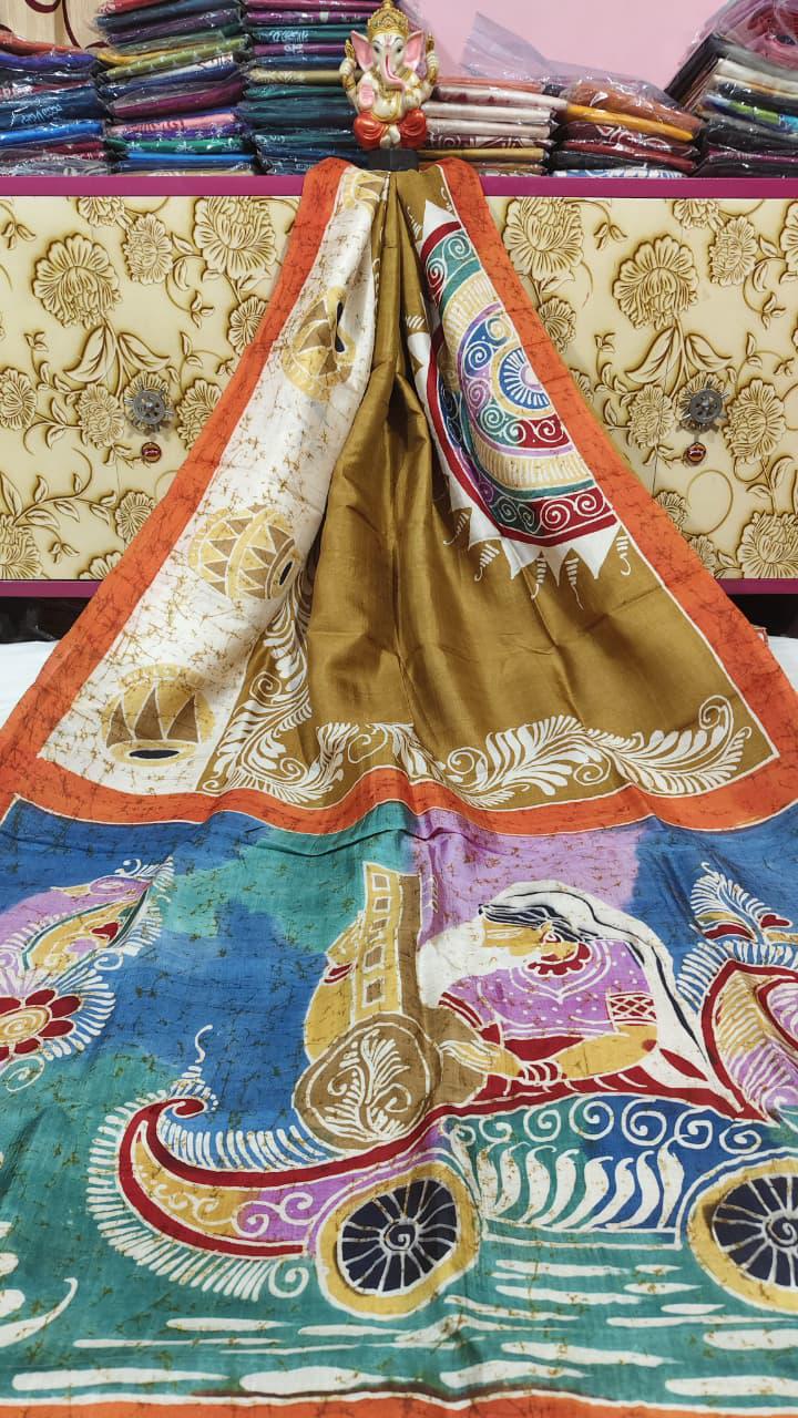 Pure silk hand batik saree