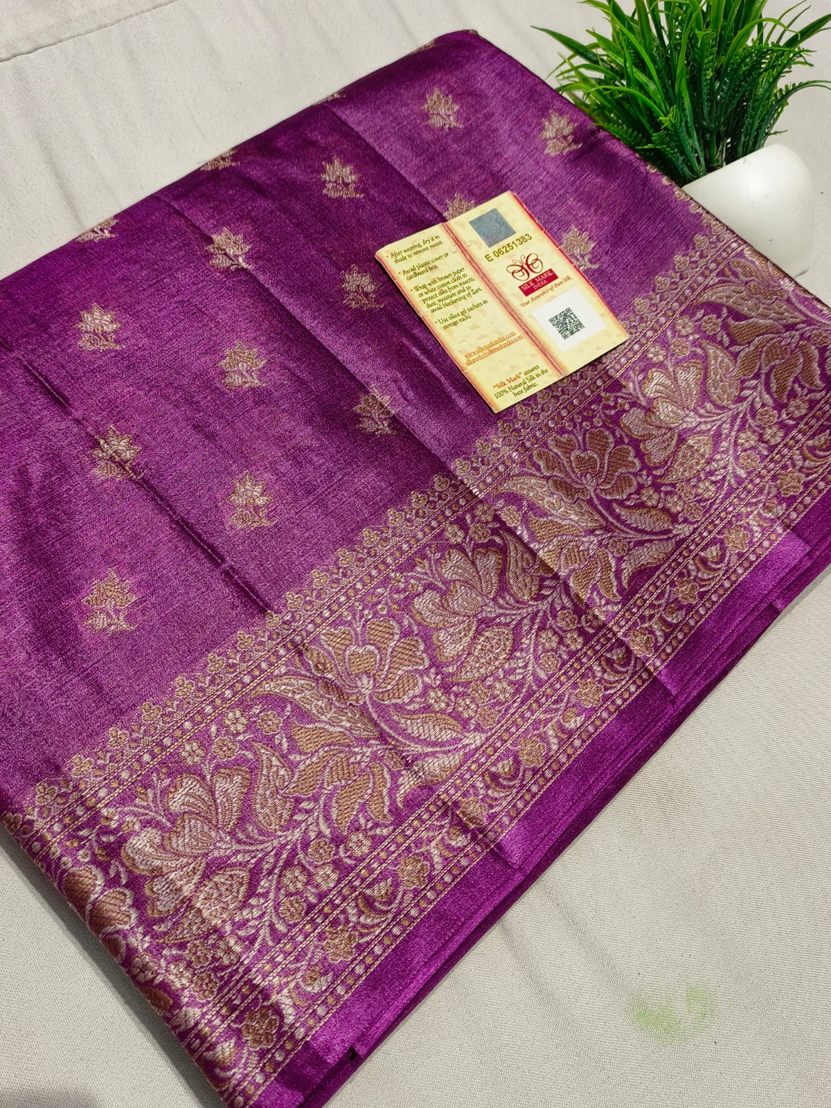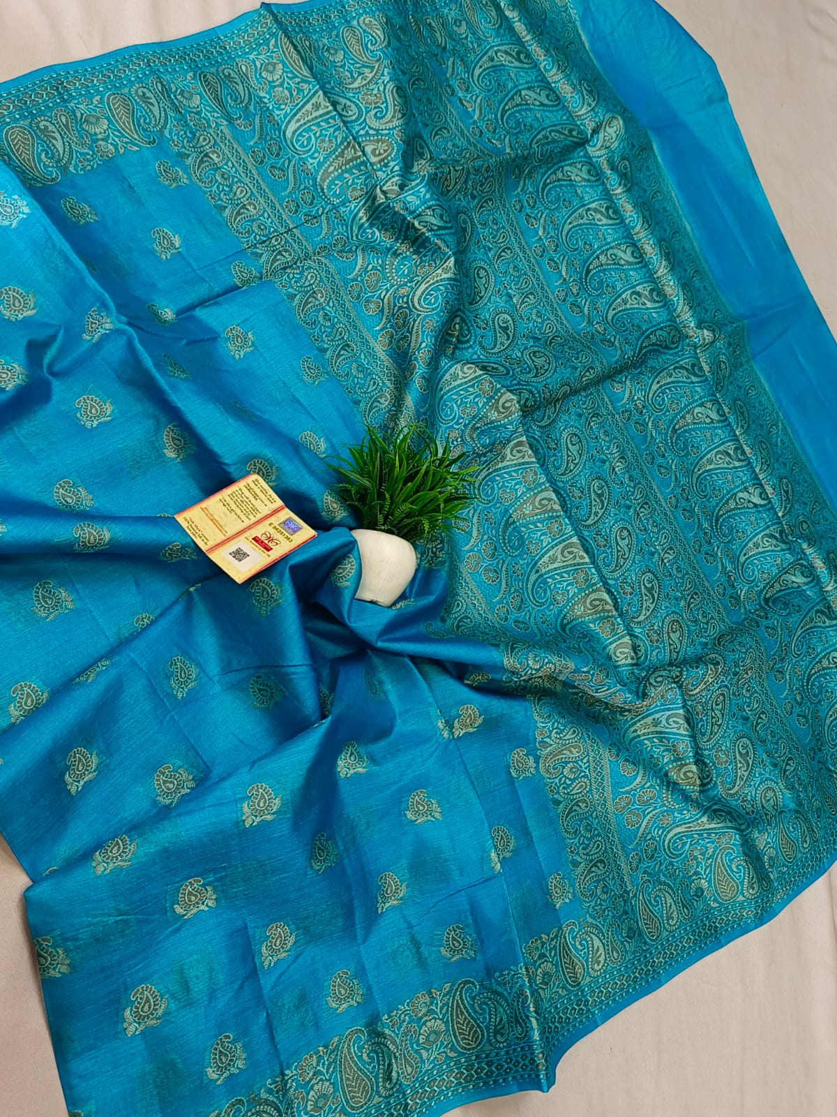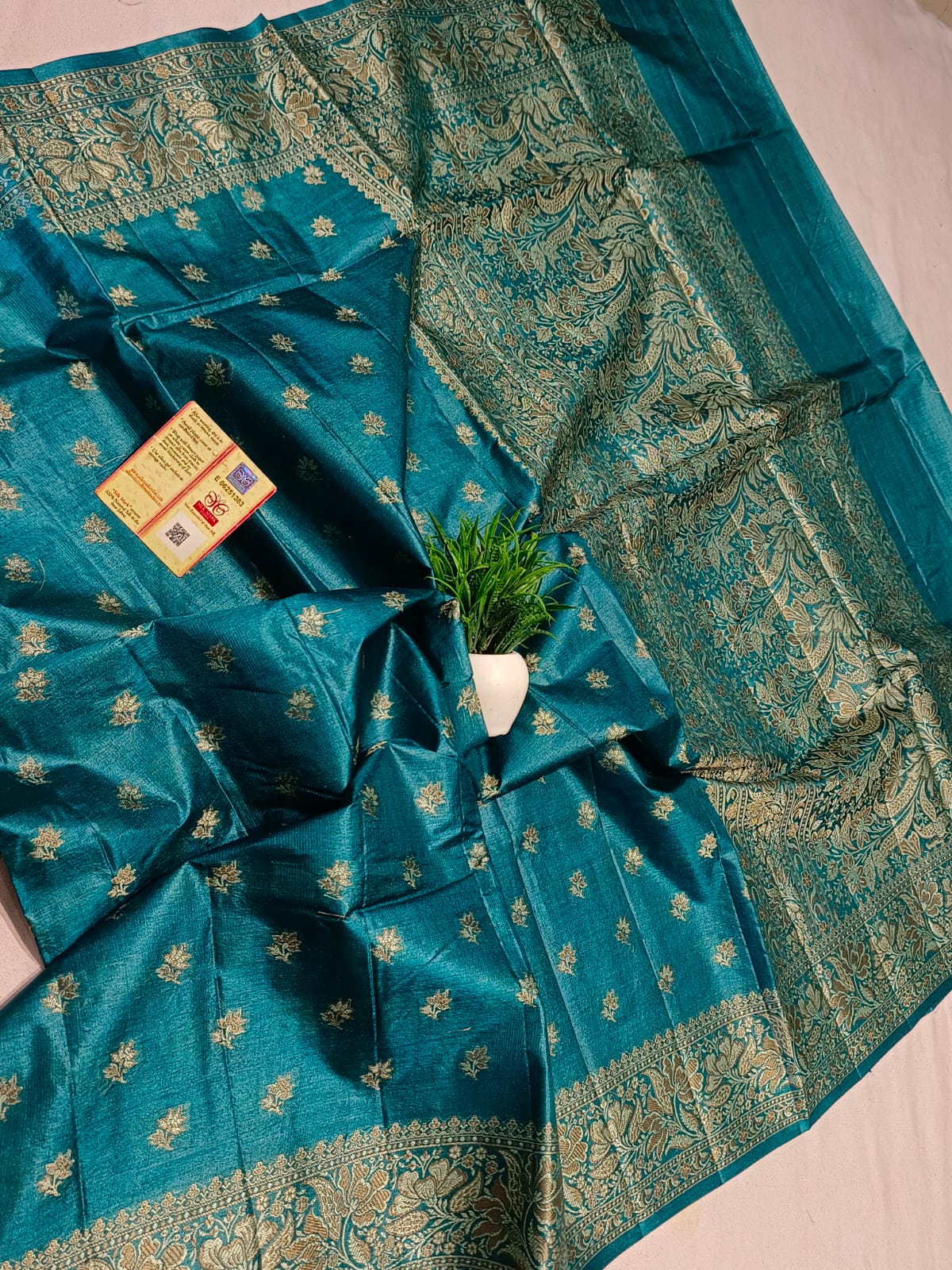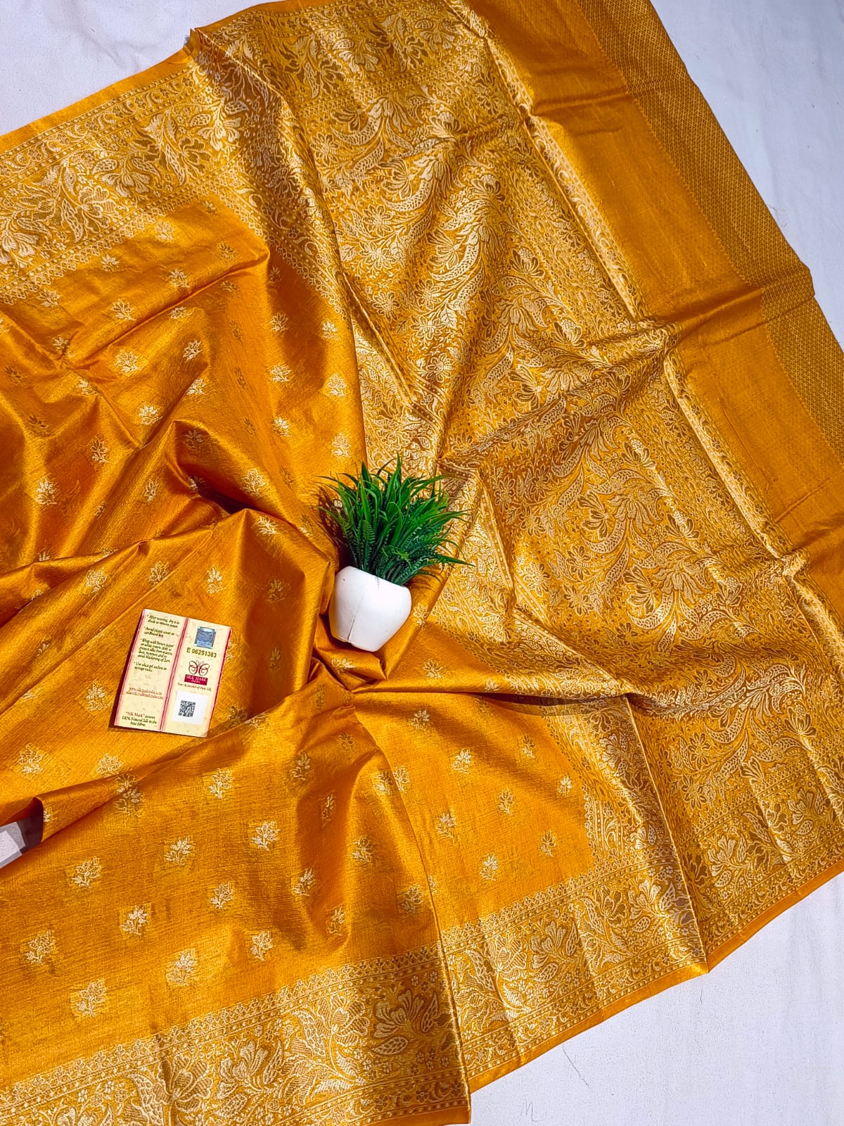 Pure tussar kosa alfi body booti design saree with rich pallu and blouse