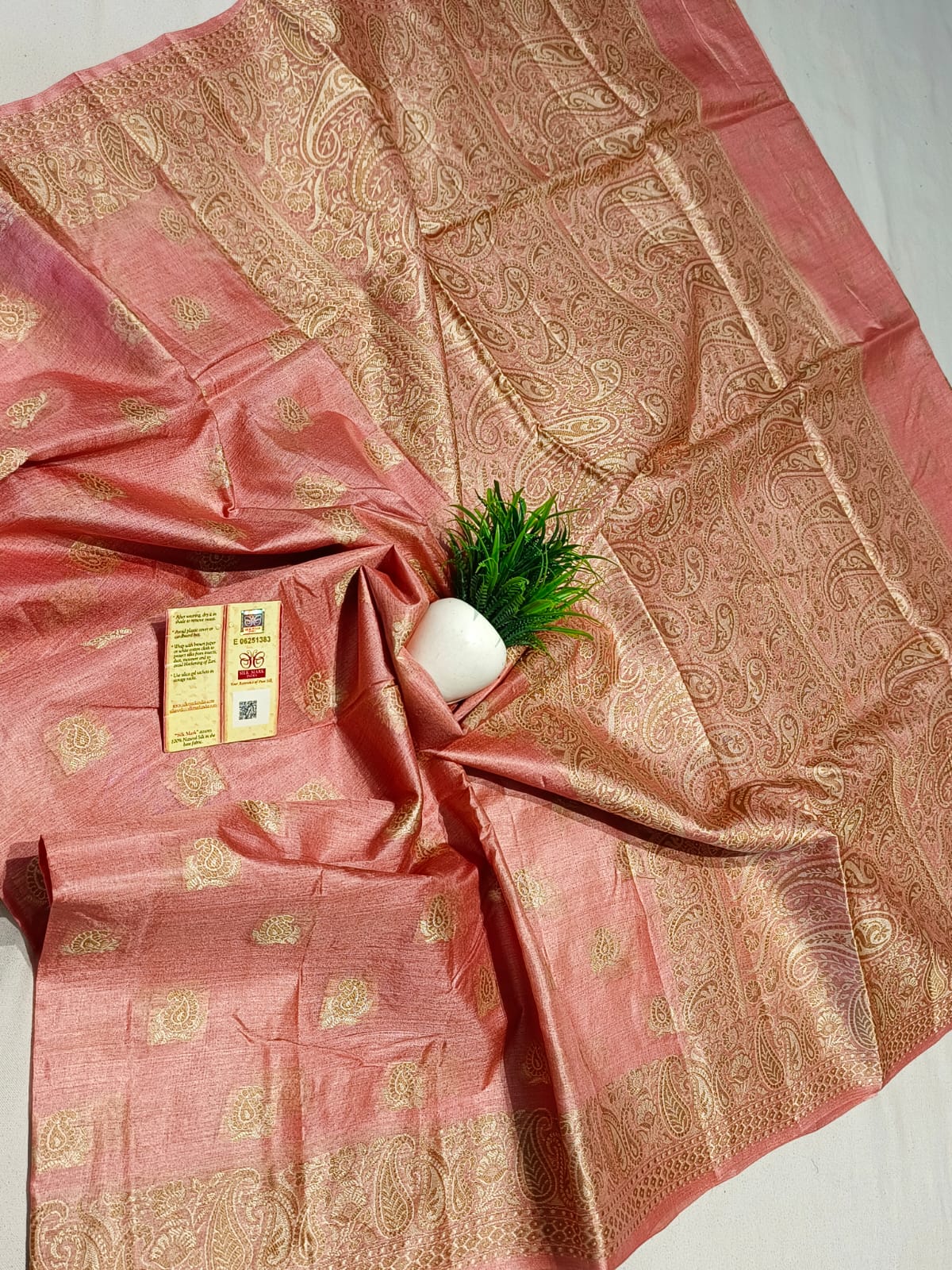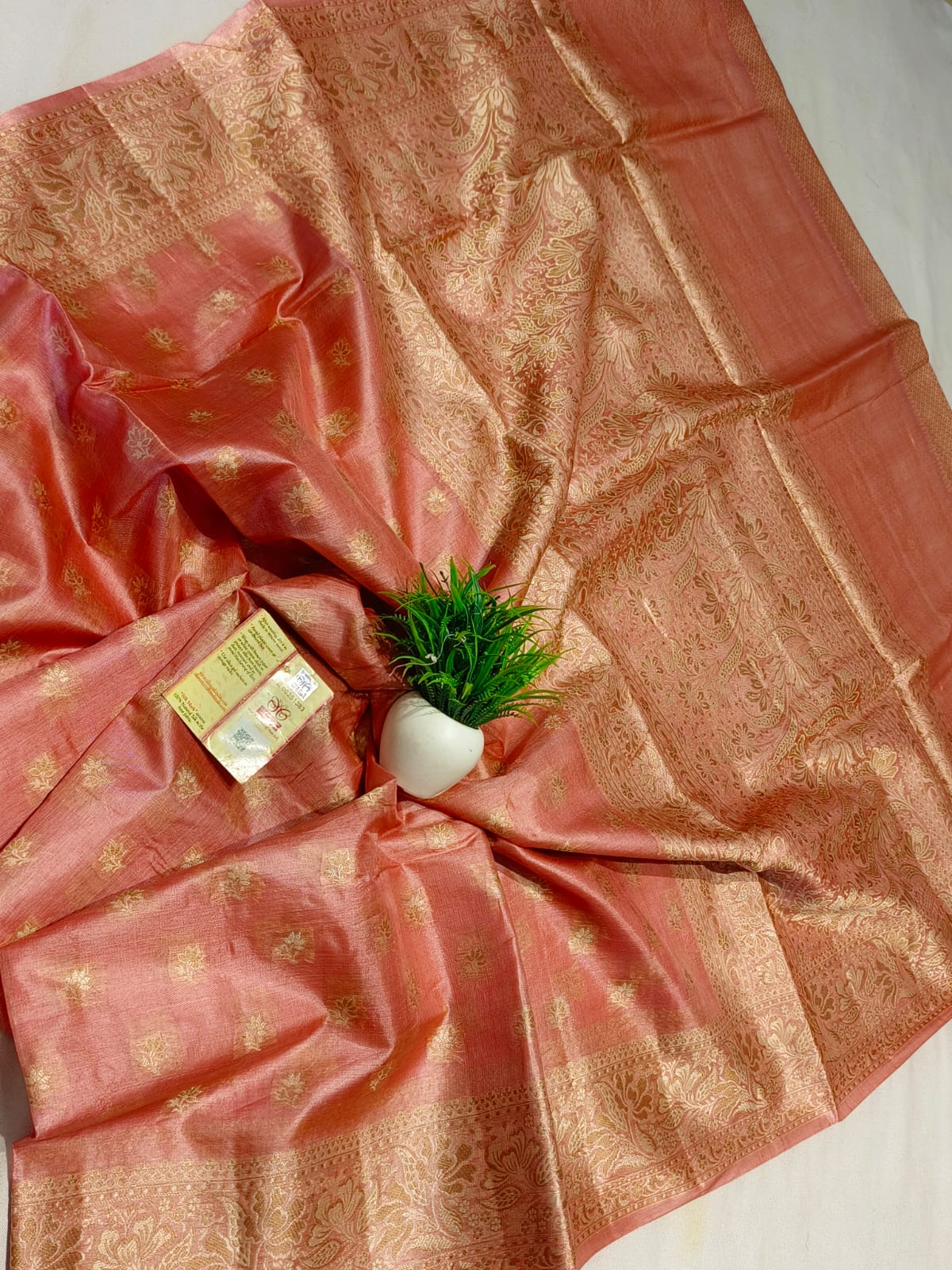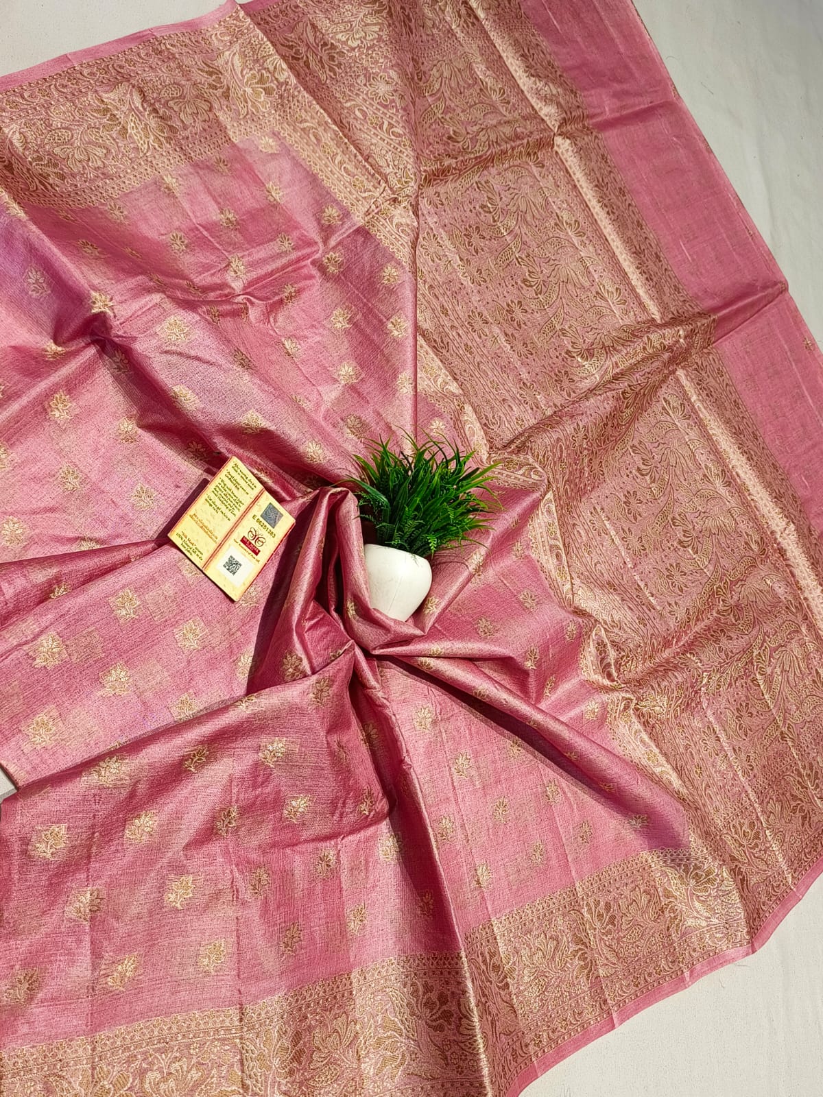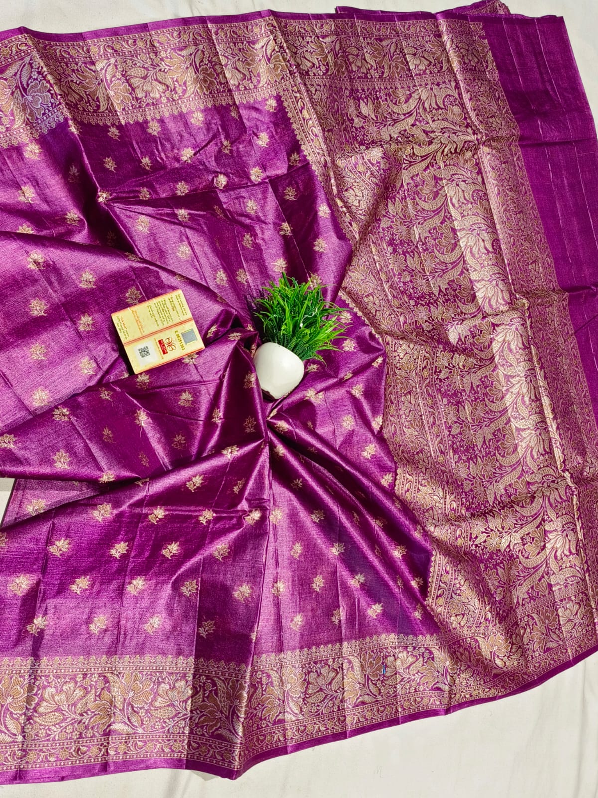 Pure tussar kosa alfi body booti design saree with rich pallu and blouse