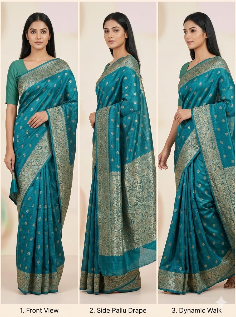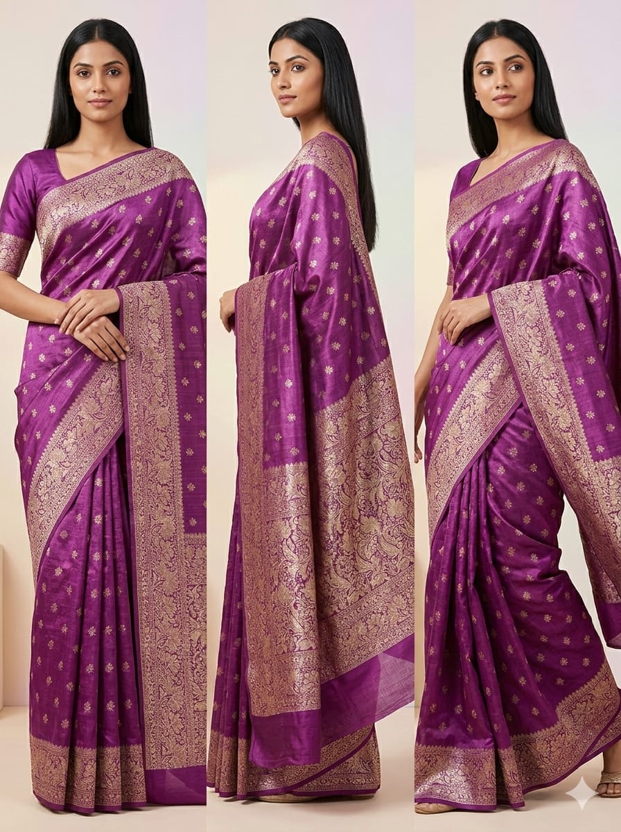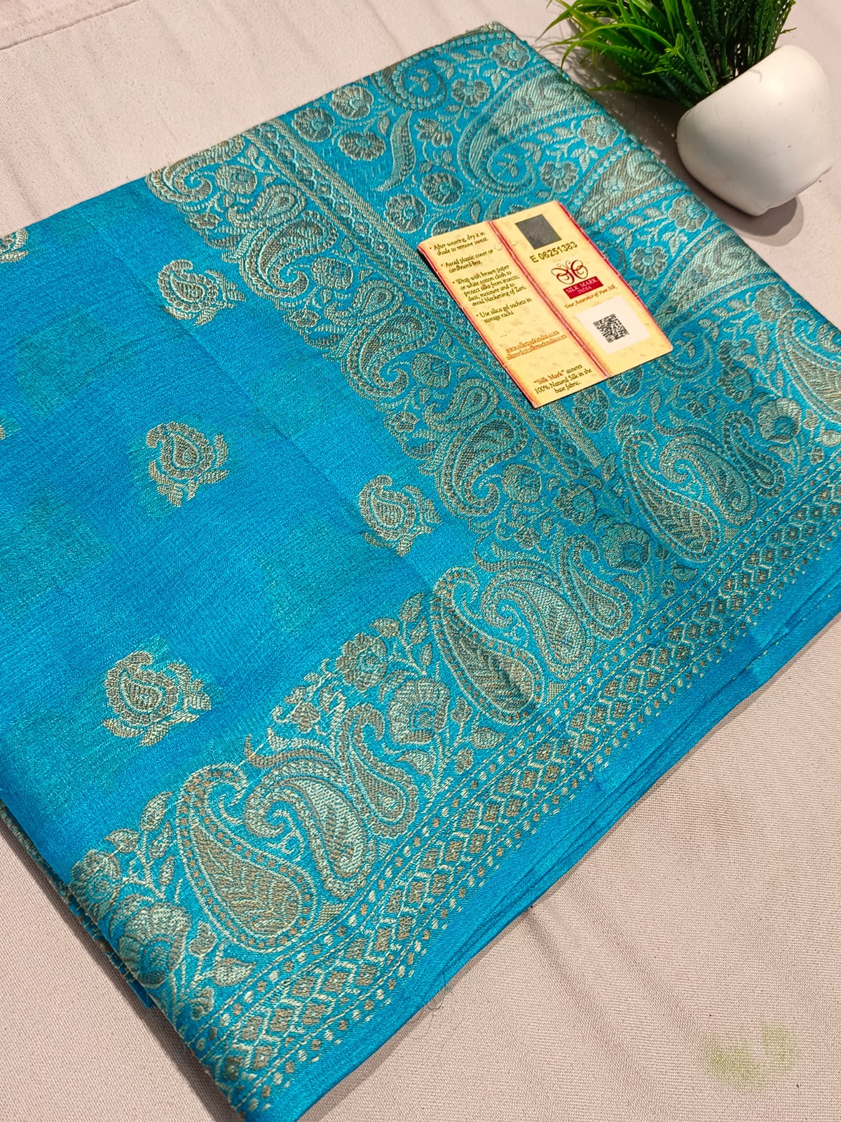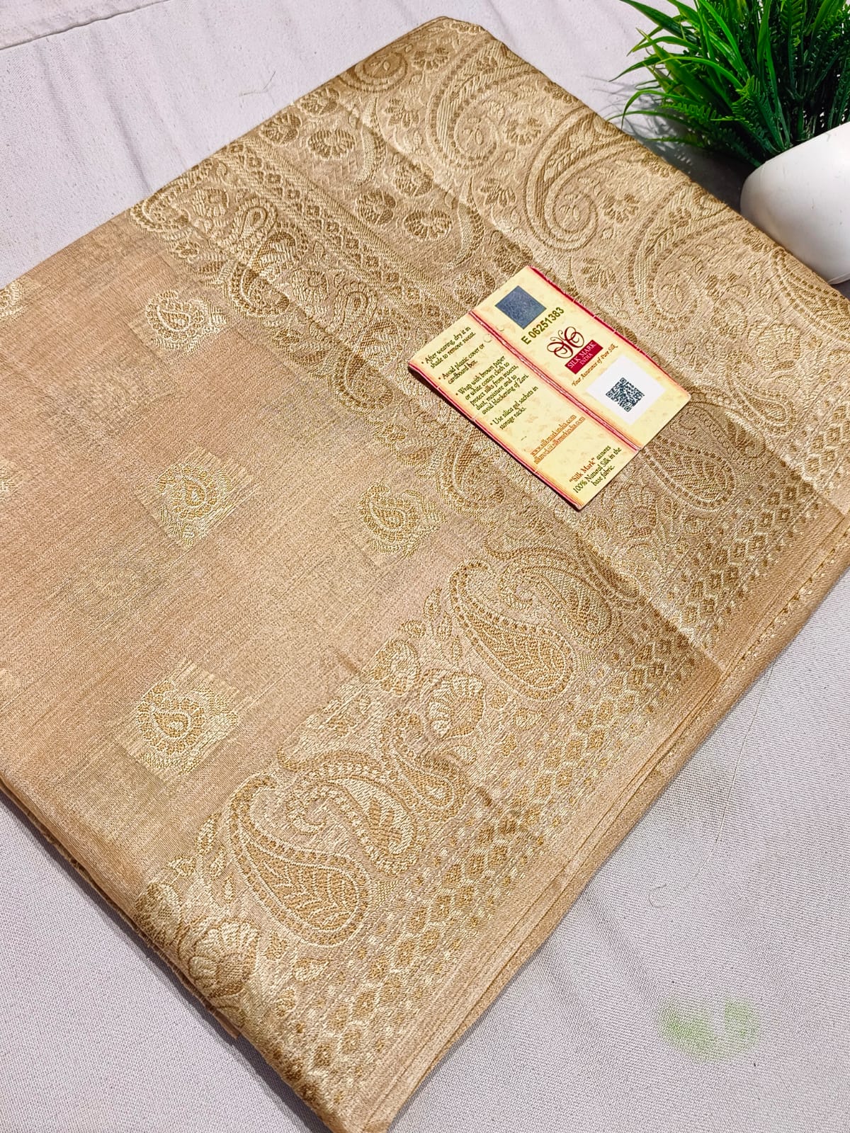Pure tussar kosa alfi body booti design saree with rich pallu and blouse