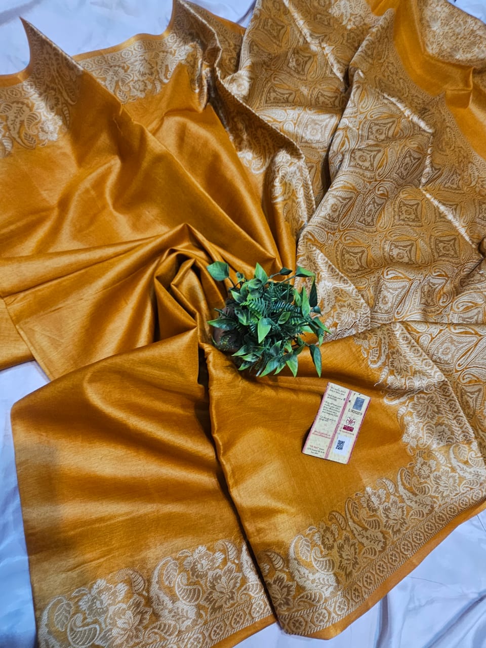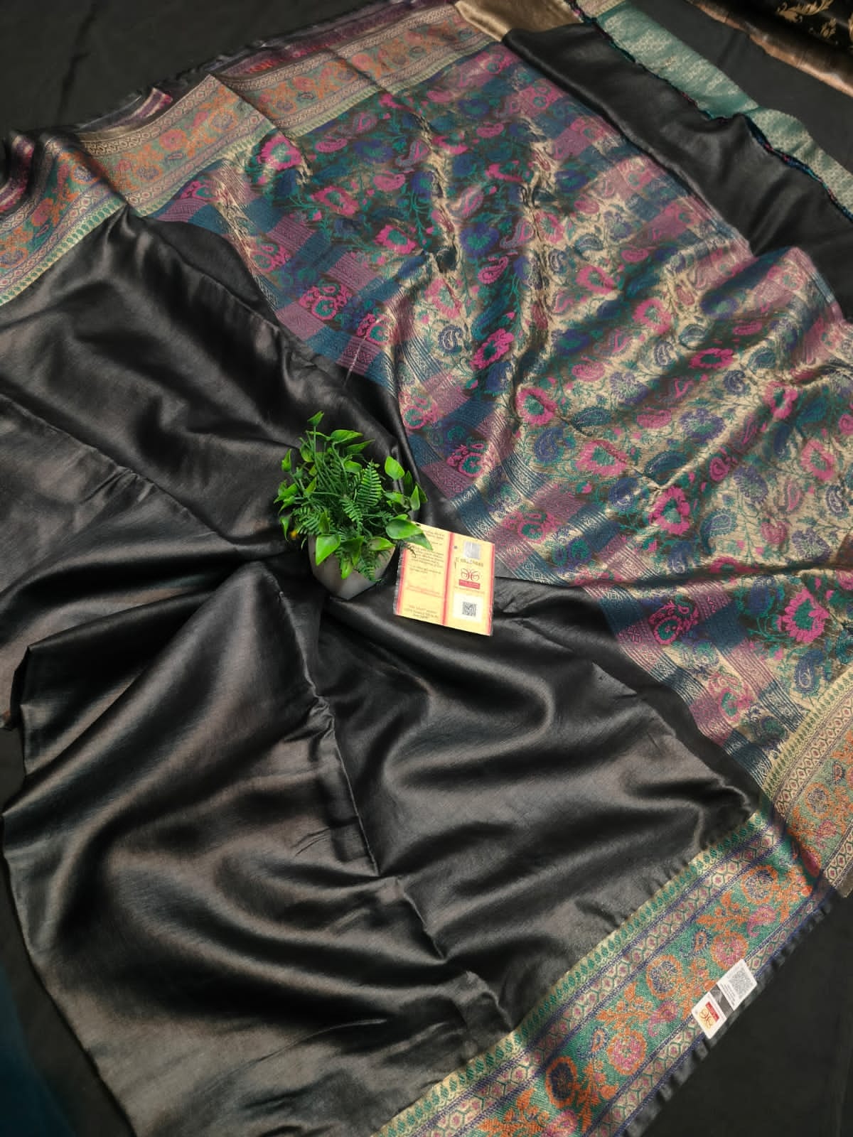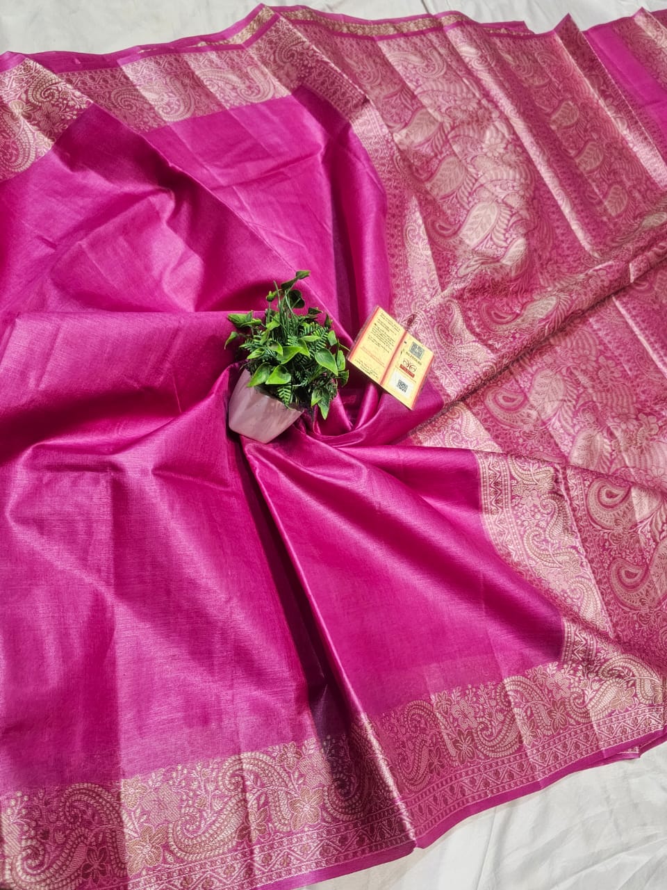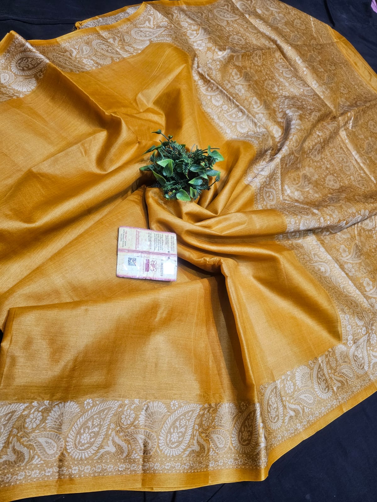 Pure tussar silk alfi & tilfi and body buta work border design saree with rich pallu and blouse
