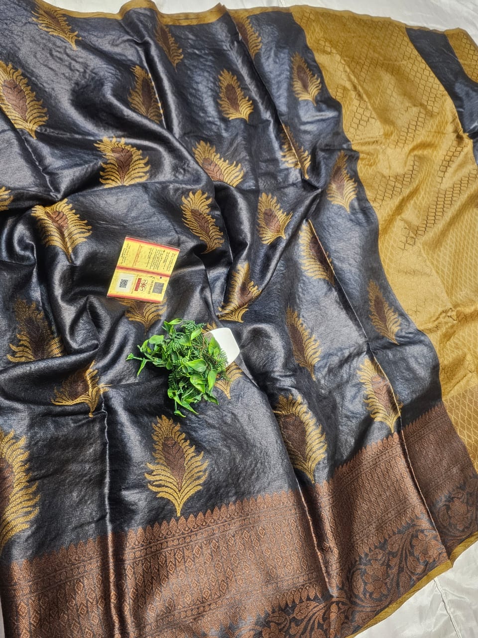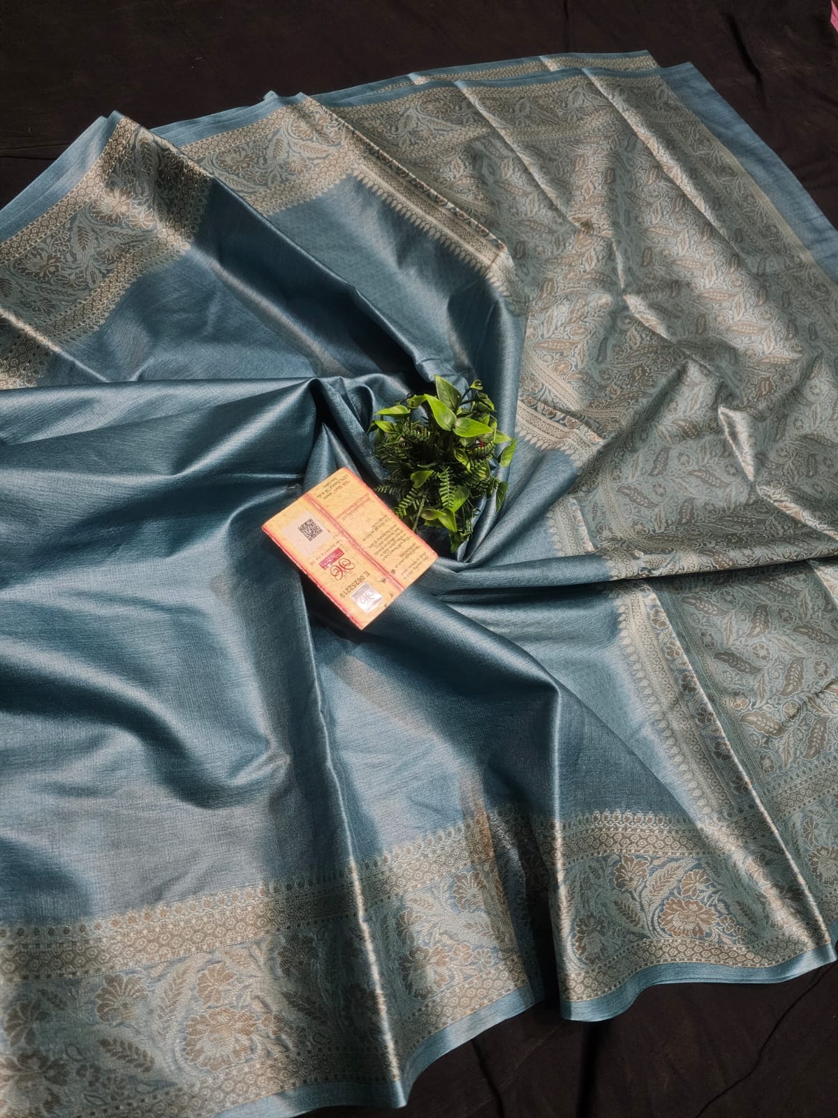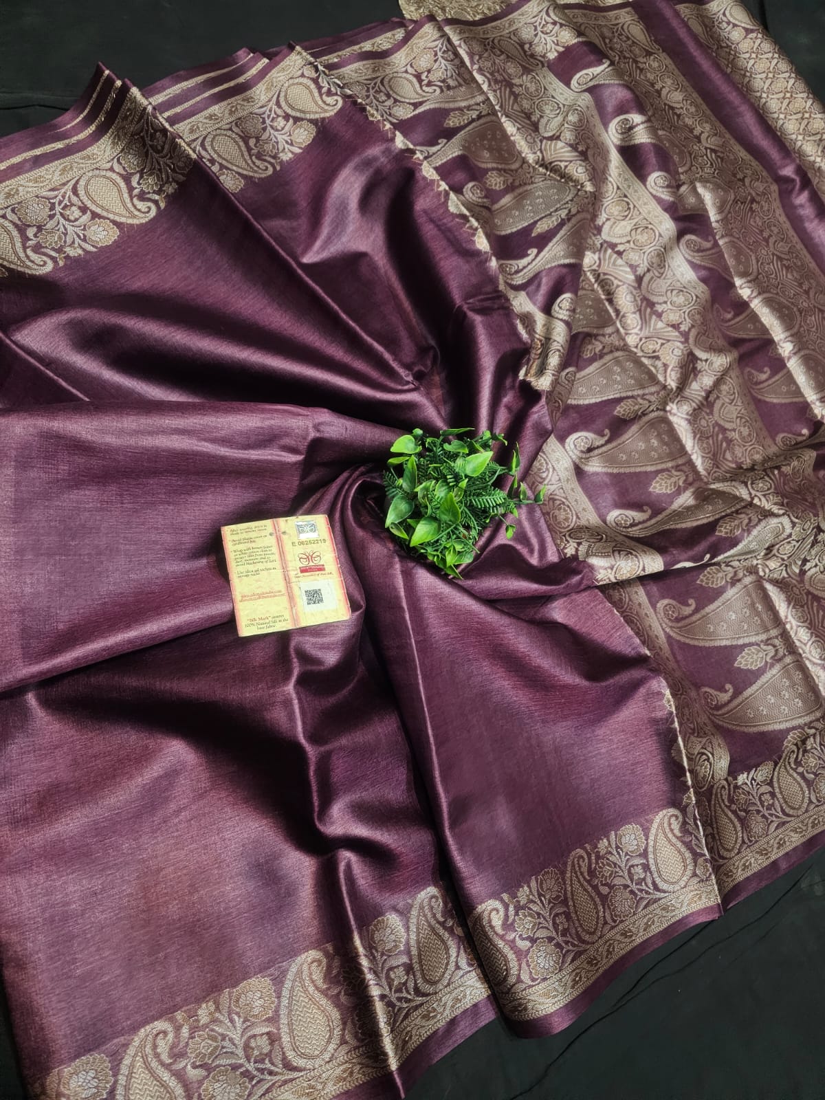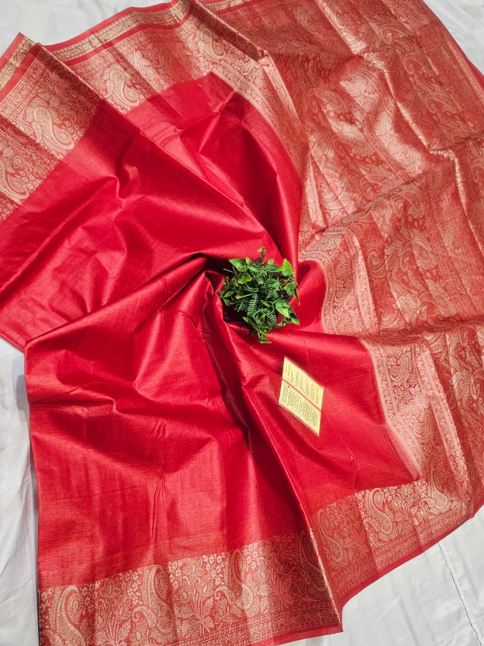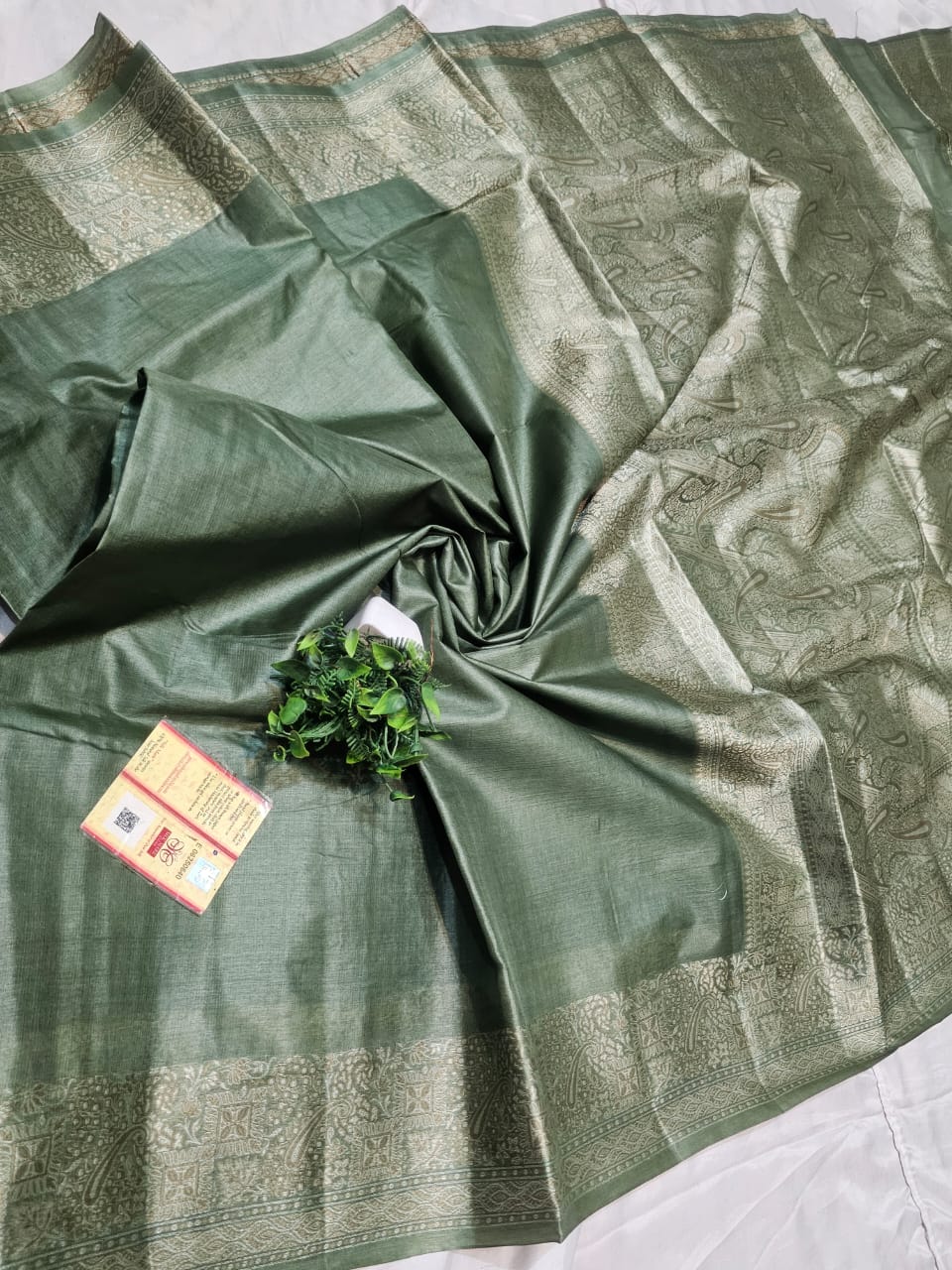 Pure tussar silk alfi & tilfi and body buta work border design saree with rich pallu and blouse