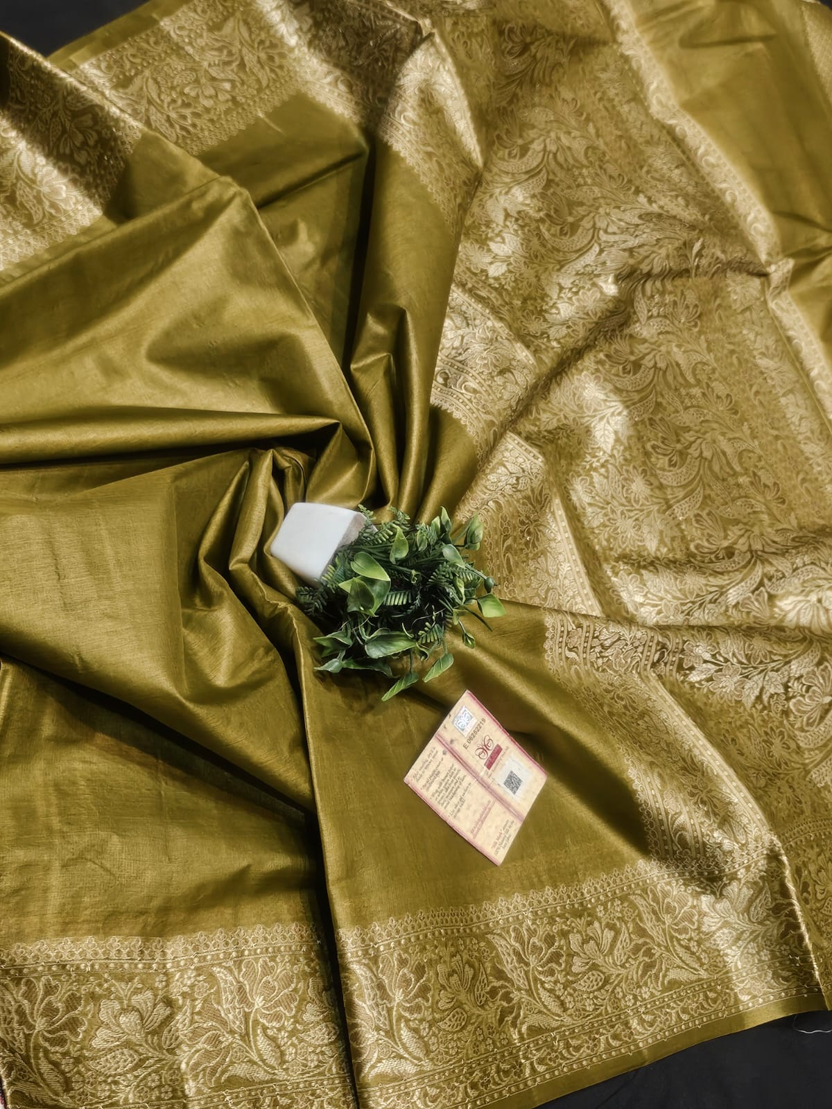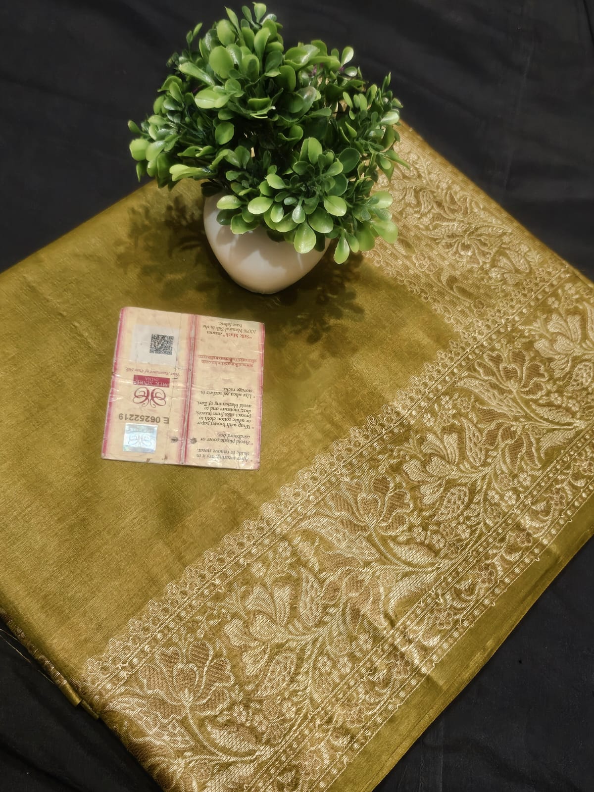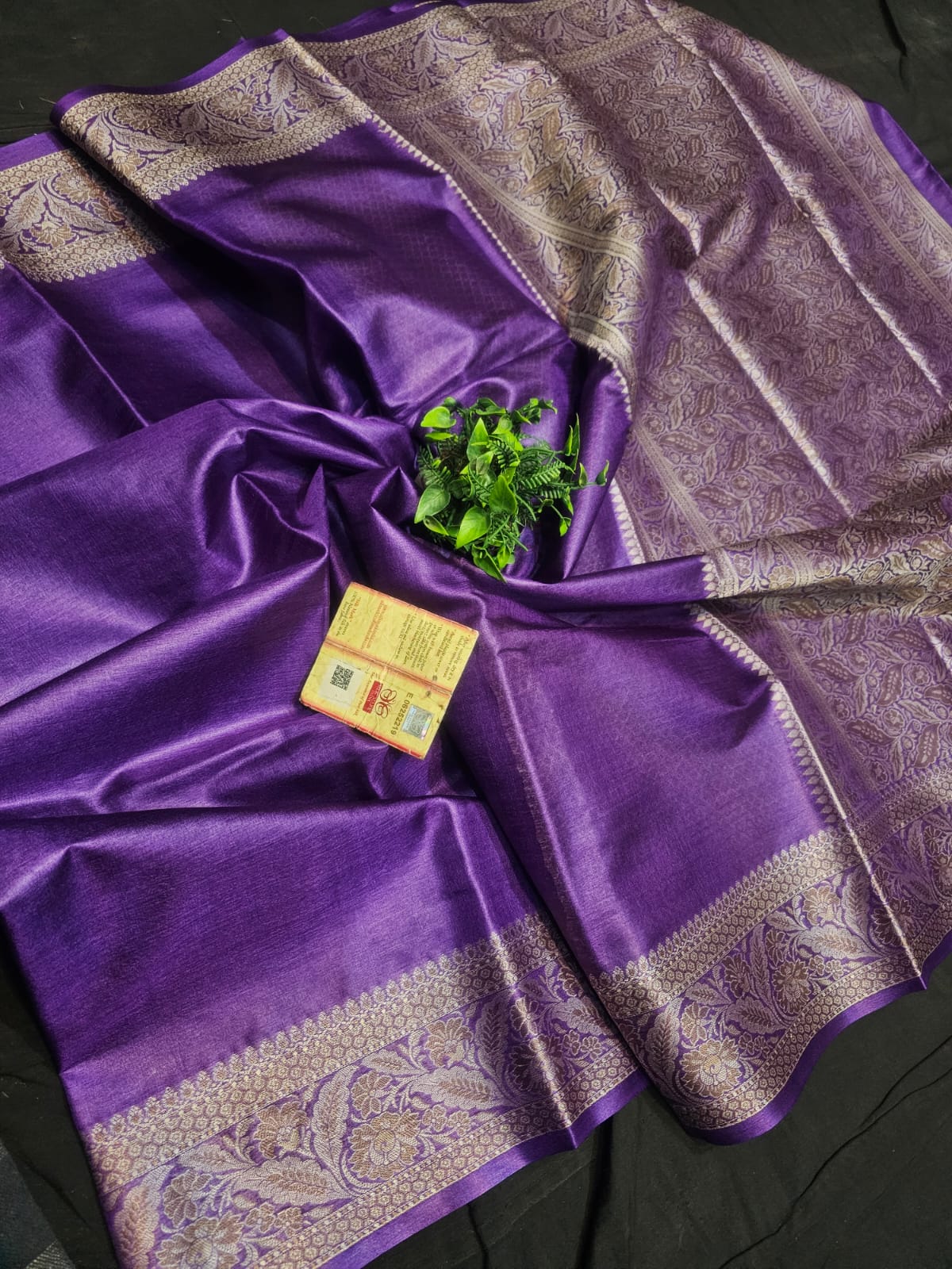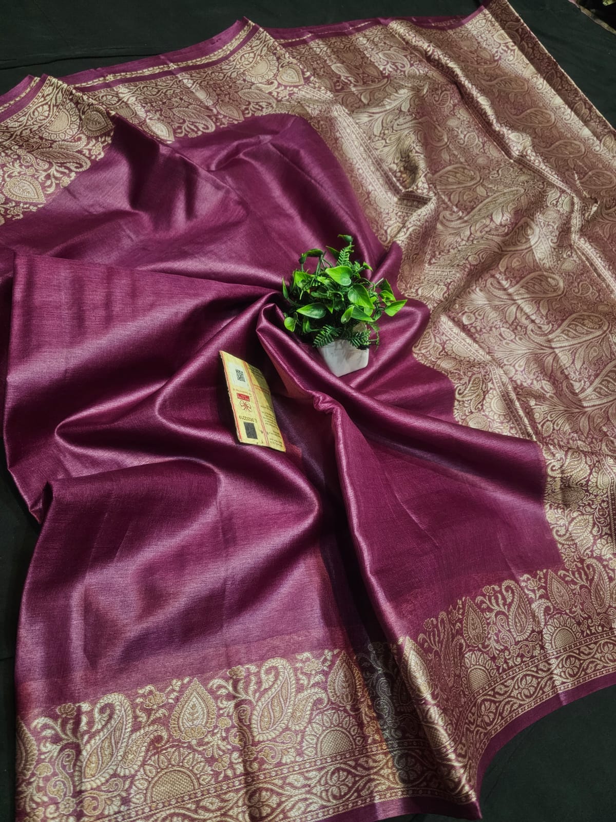 Pure tussar silk alfi & tilfi and body buta work border design saree with rich pallu and blouse