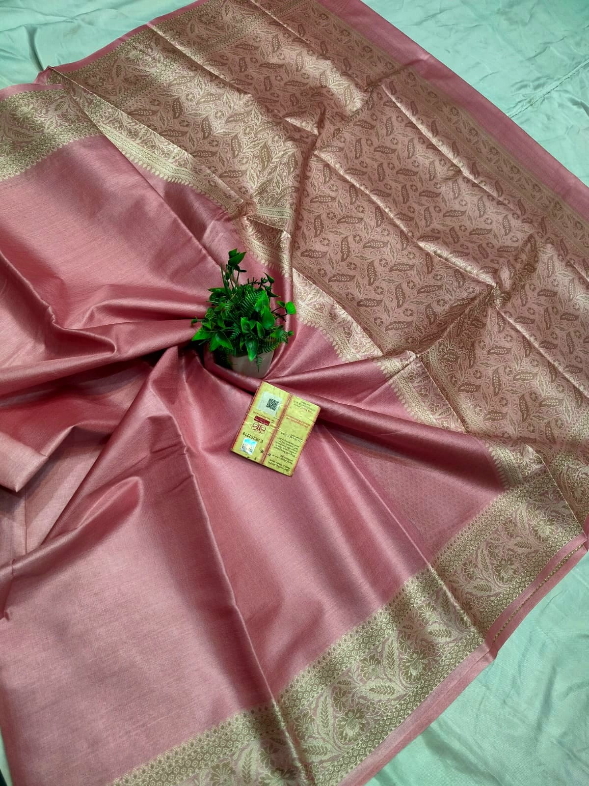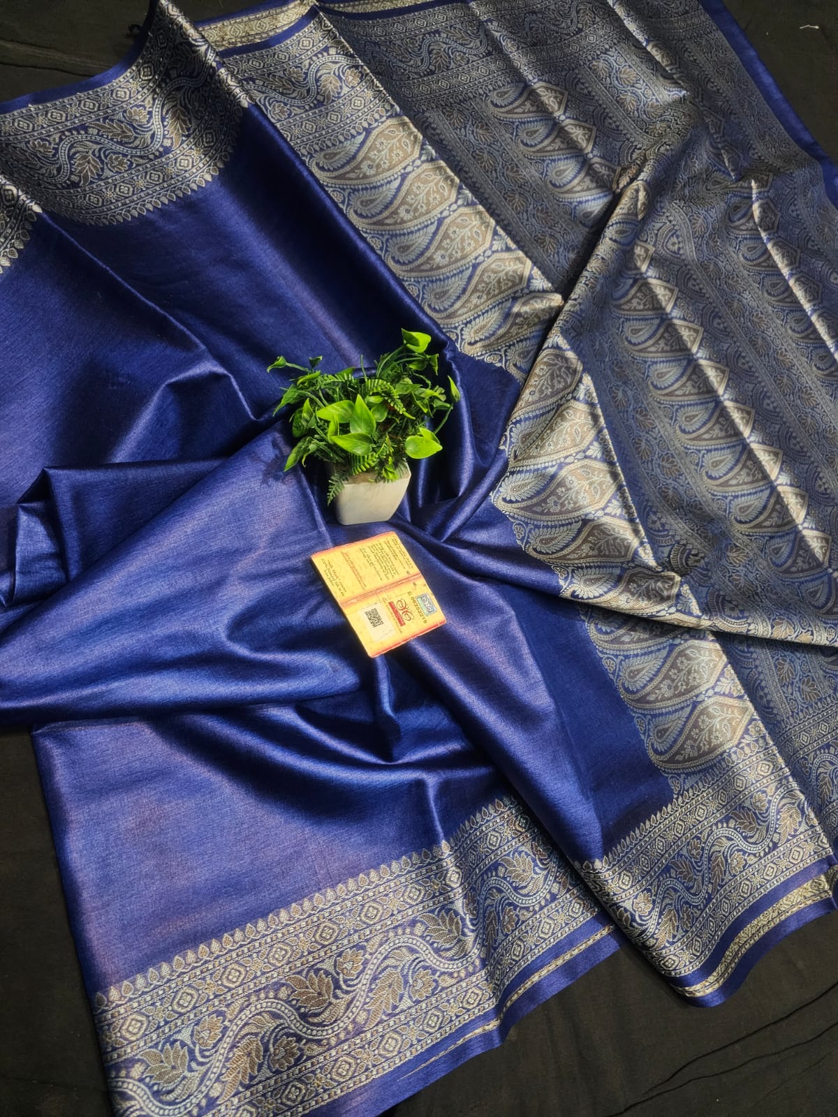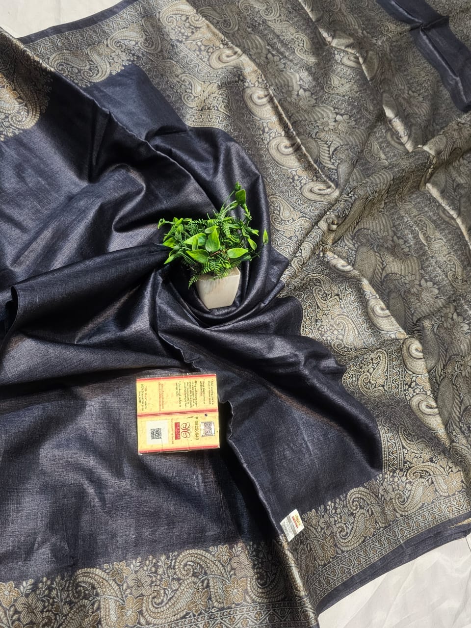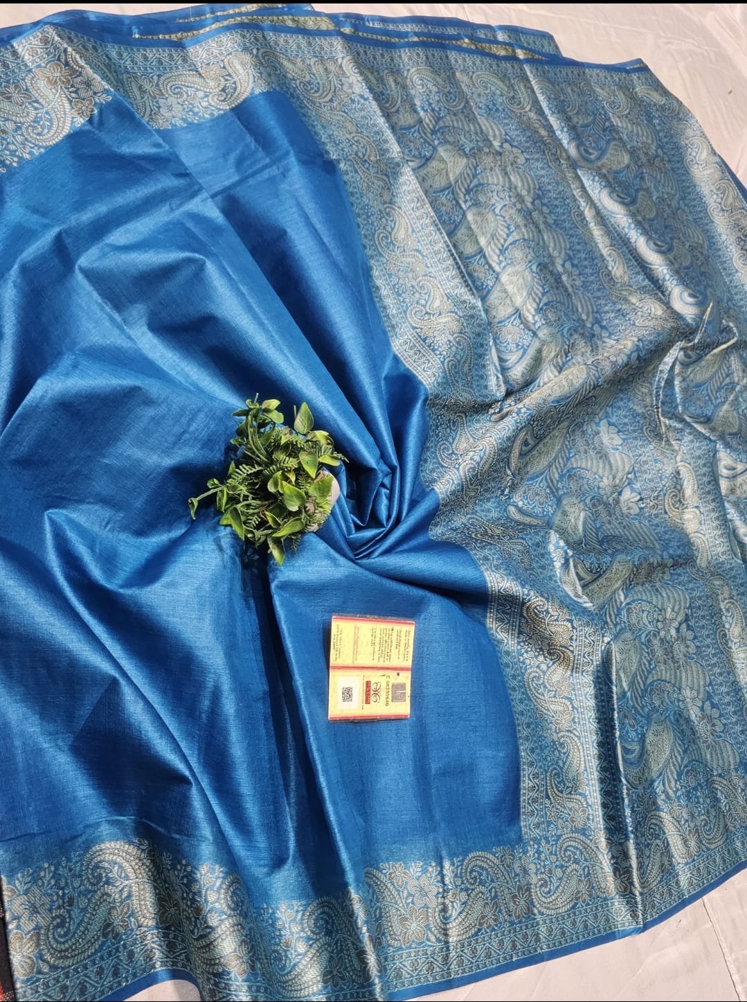 Pure tussar silk alfi & tilfi and body buta work border design saree with rich pallu and blouse