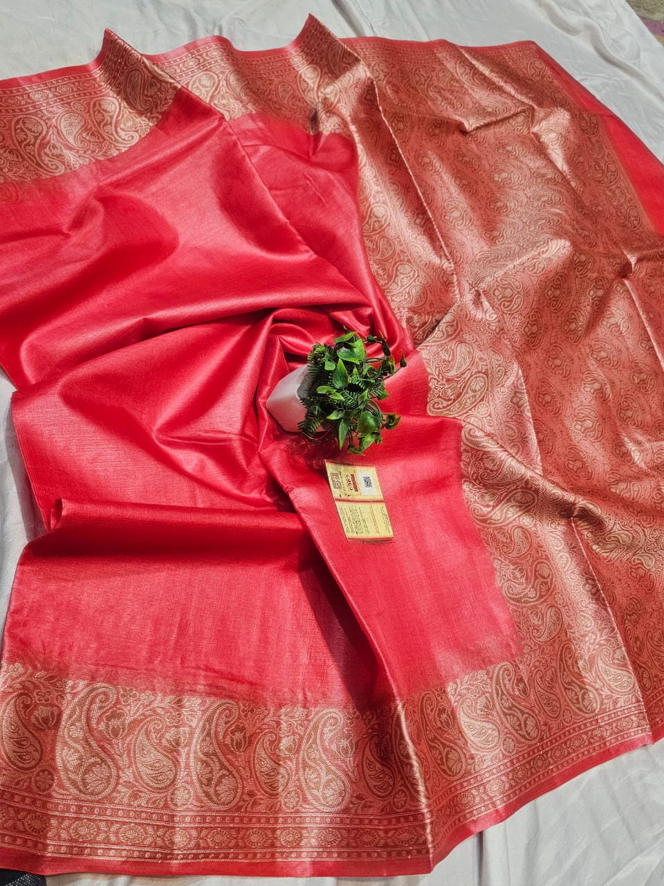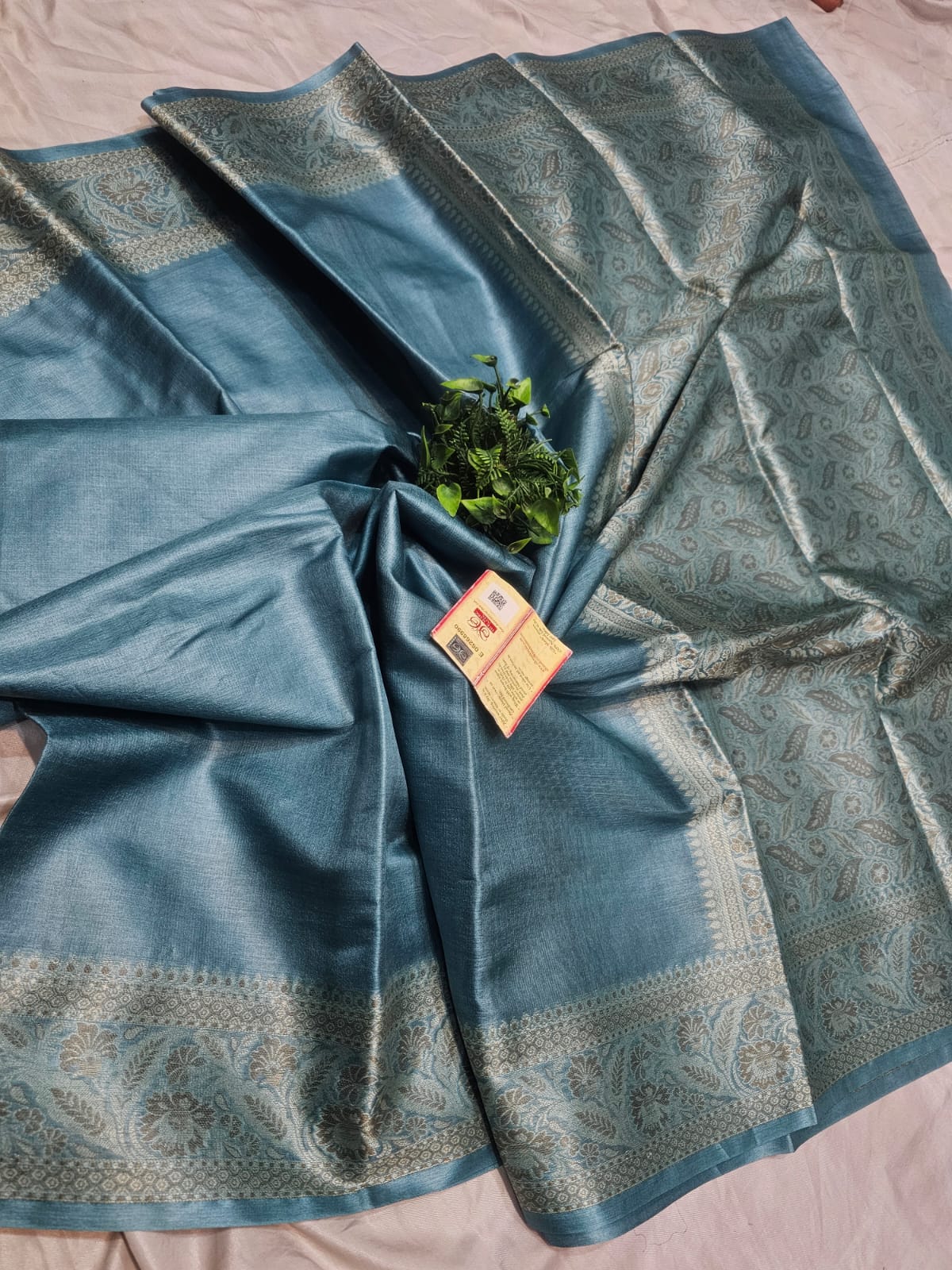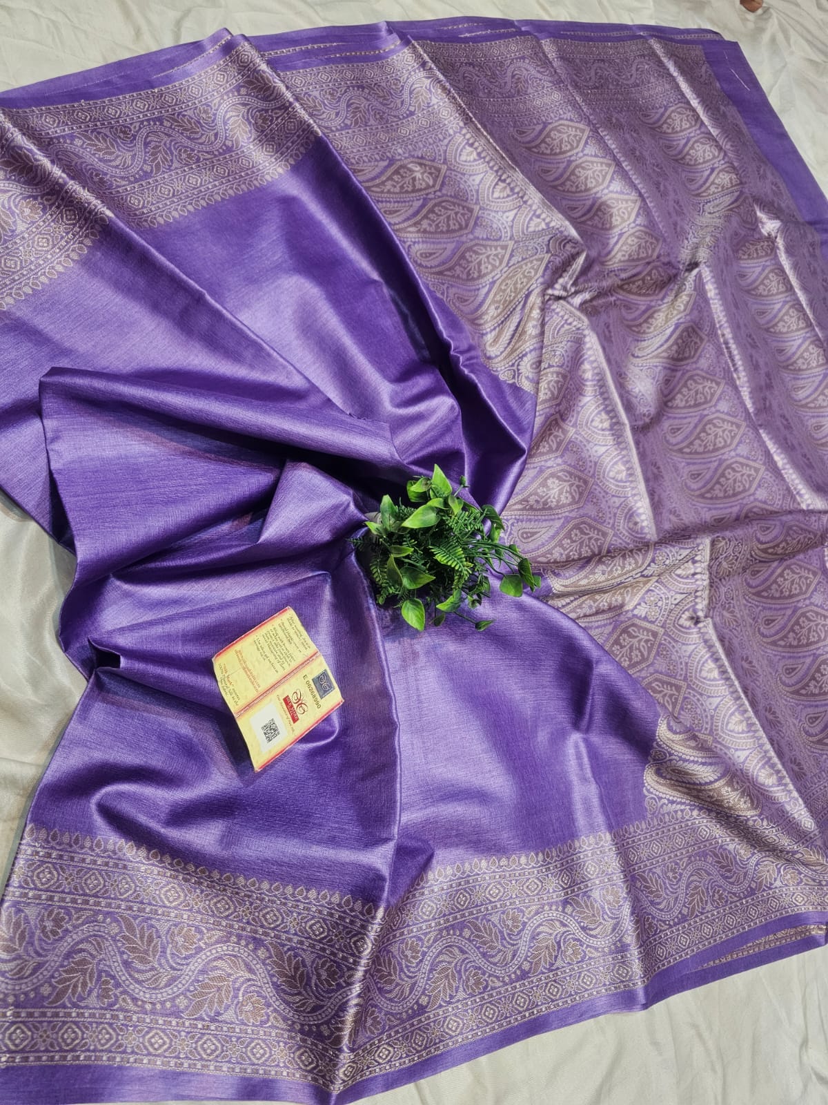 Pure tussar silk alfi & tilfi and body buta work border design saree with rich pallu and blouse
