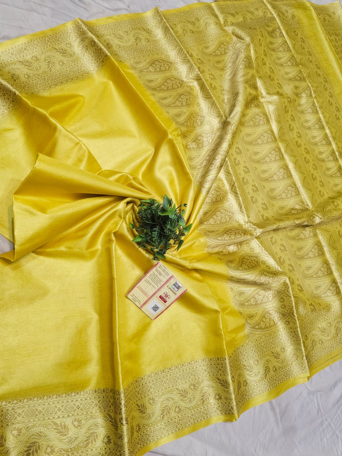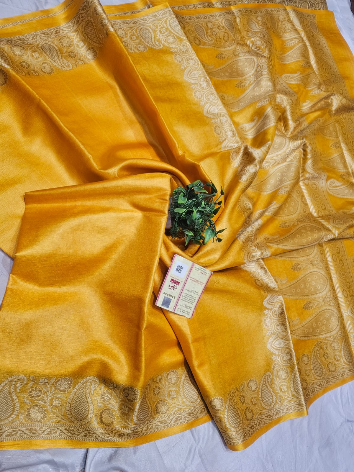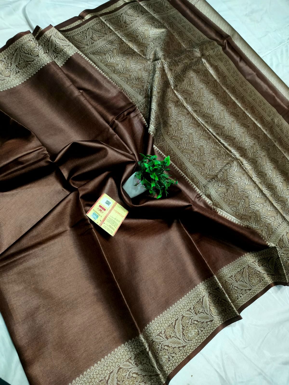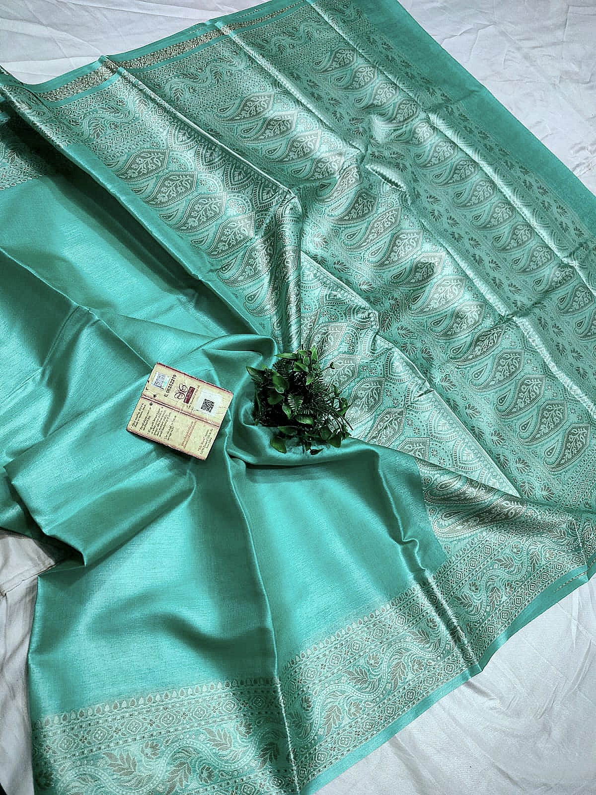 Pure tussar silk alfi & tilfi and body buta work border design saree with rich pallu and blouse