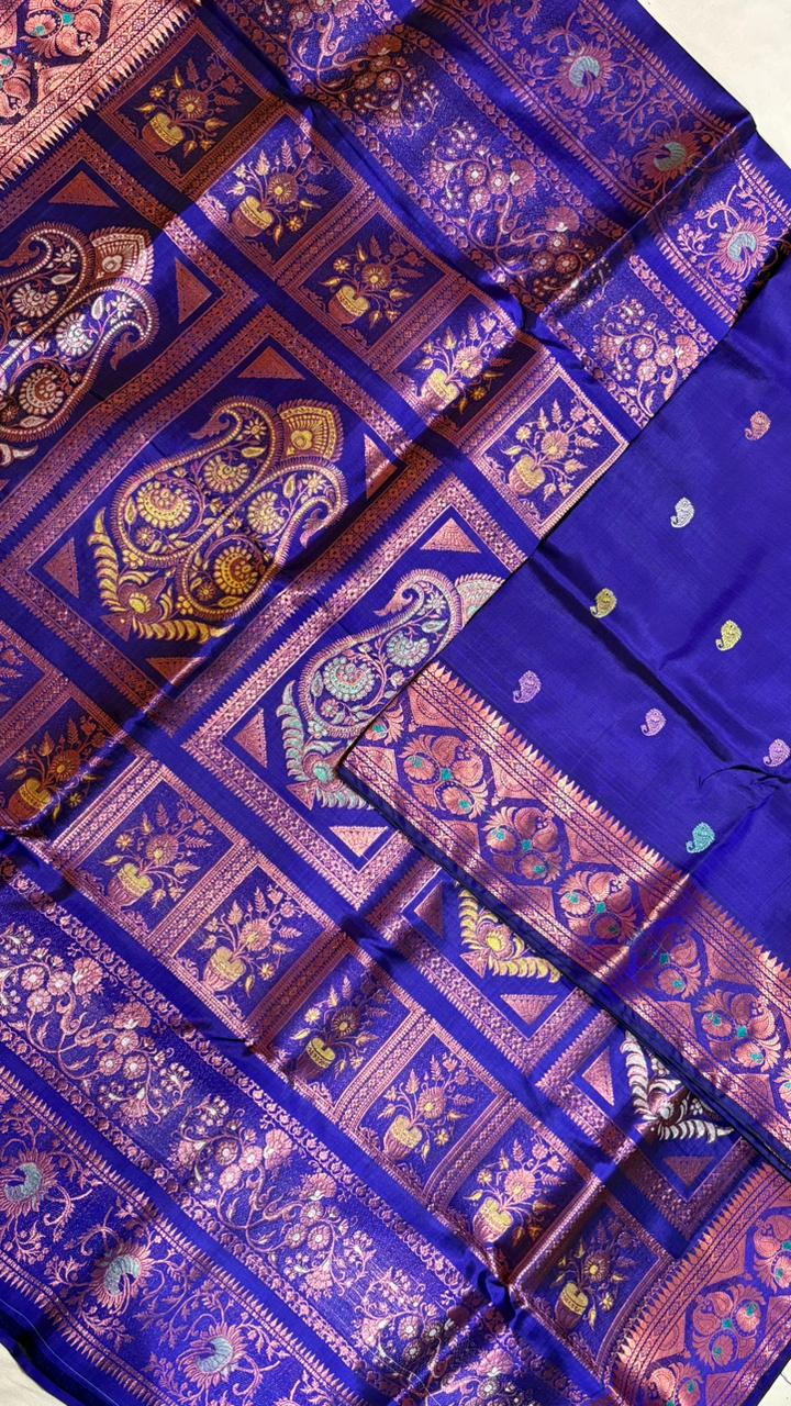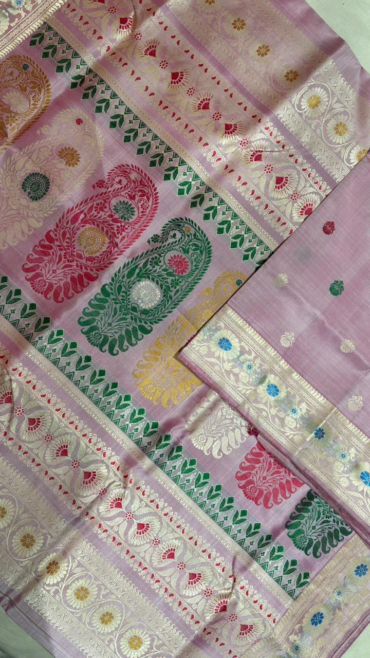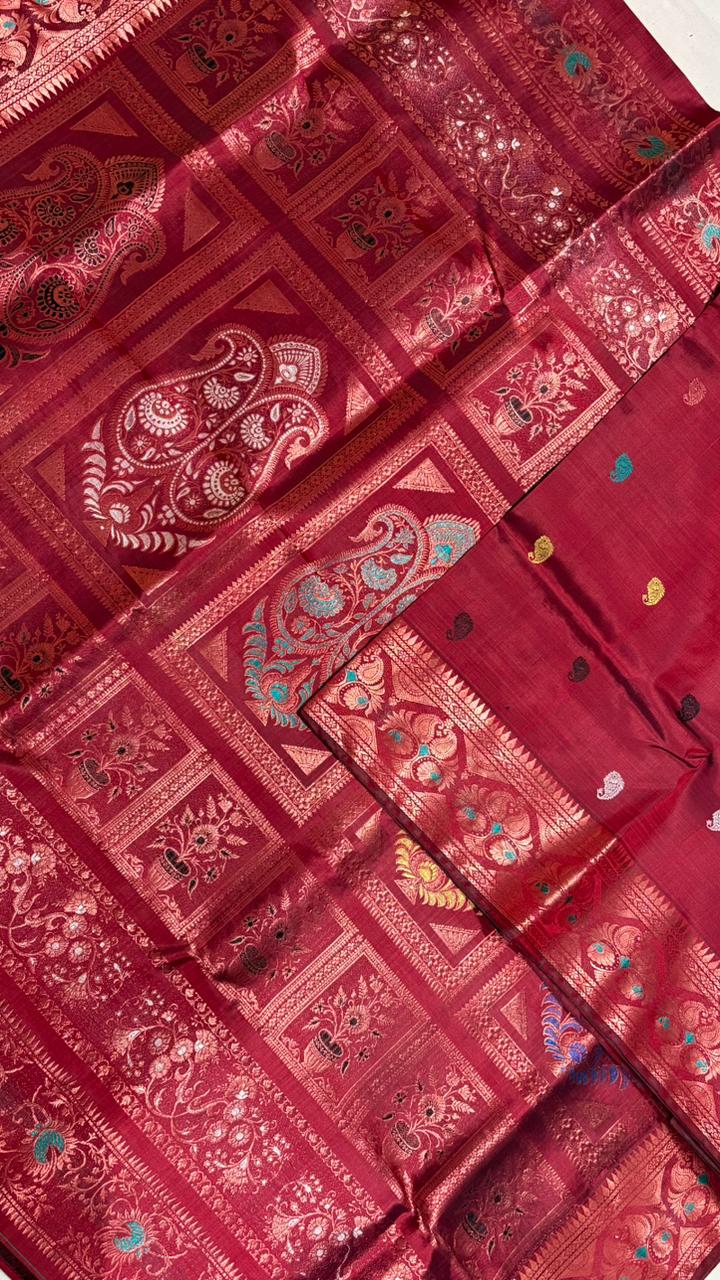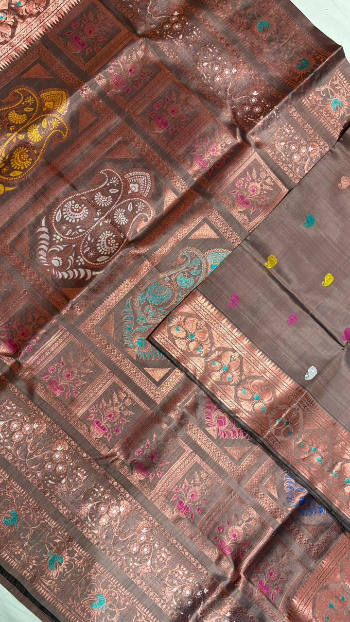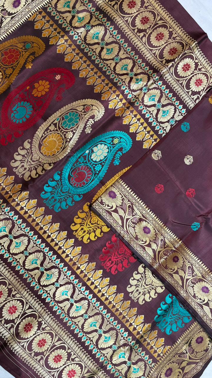 Exclusive collection of Bishnupuri Check Zari Tussar Dye Worked with Hand-Kalamkari Blouse Piece