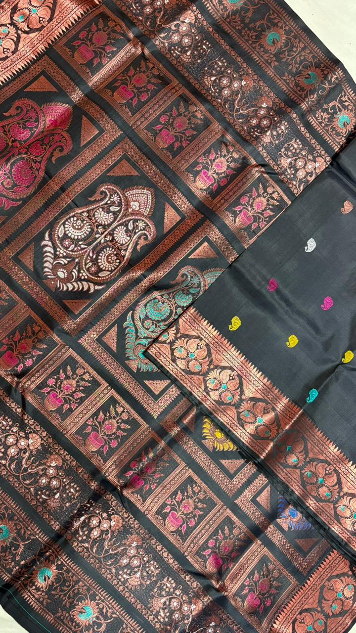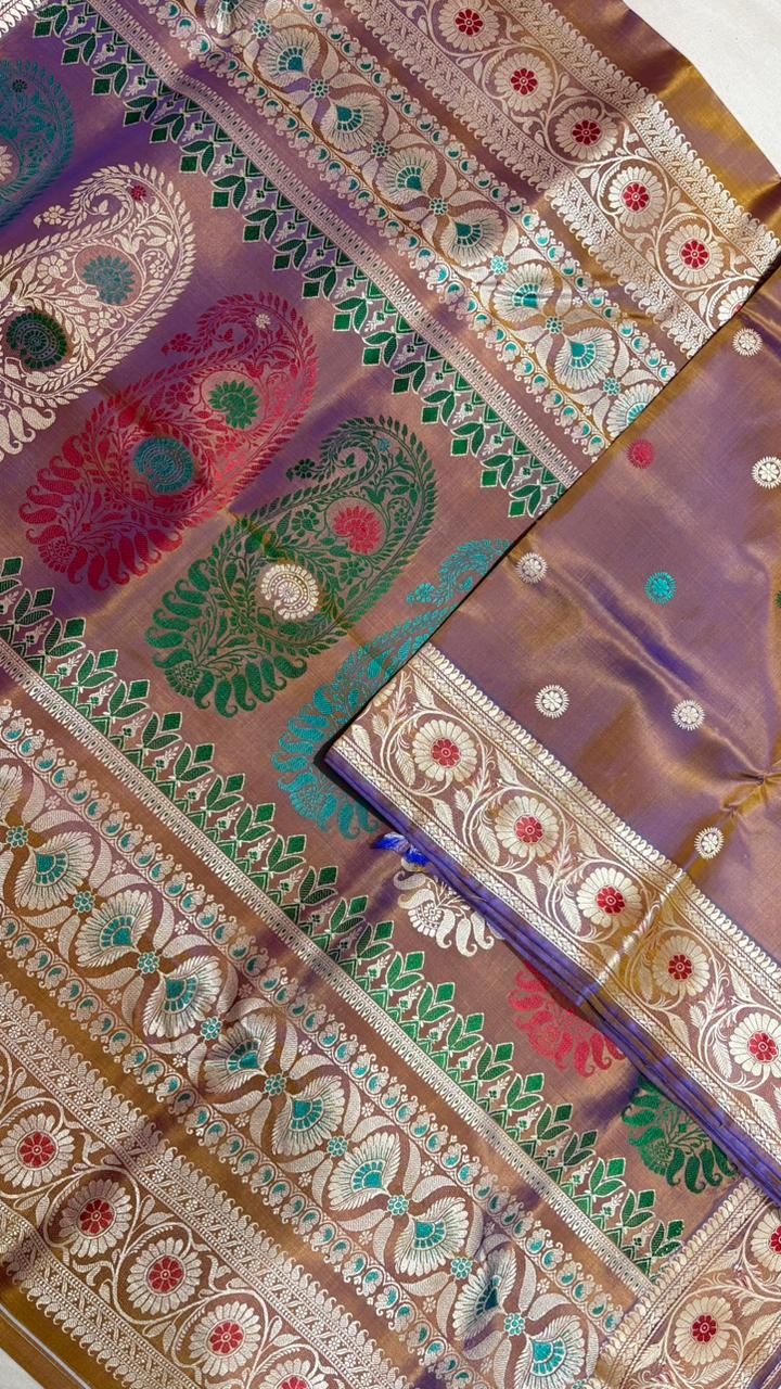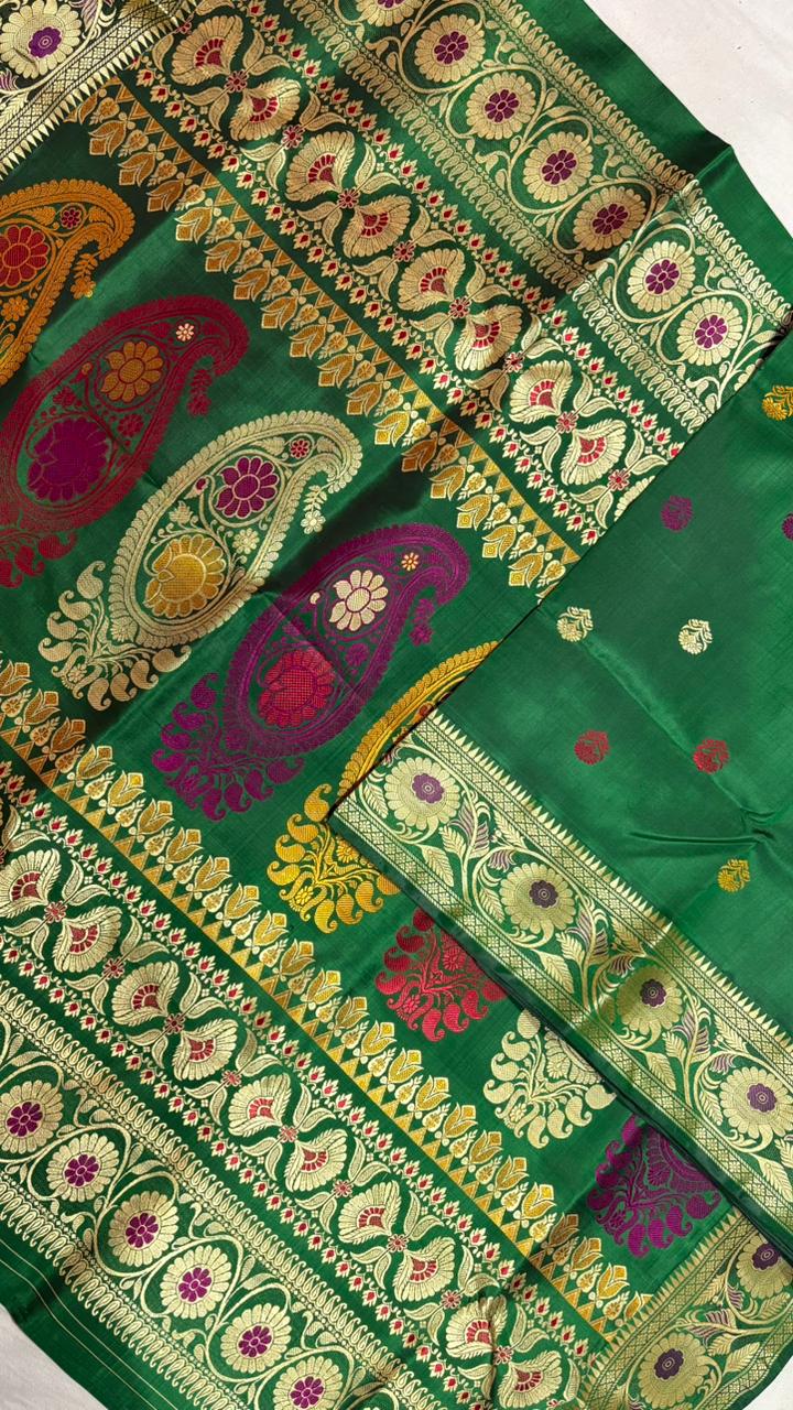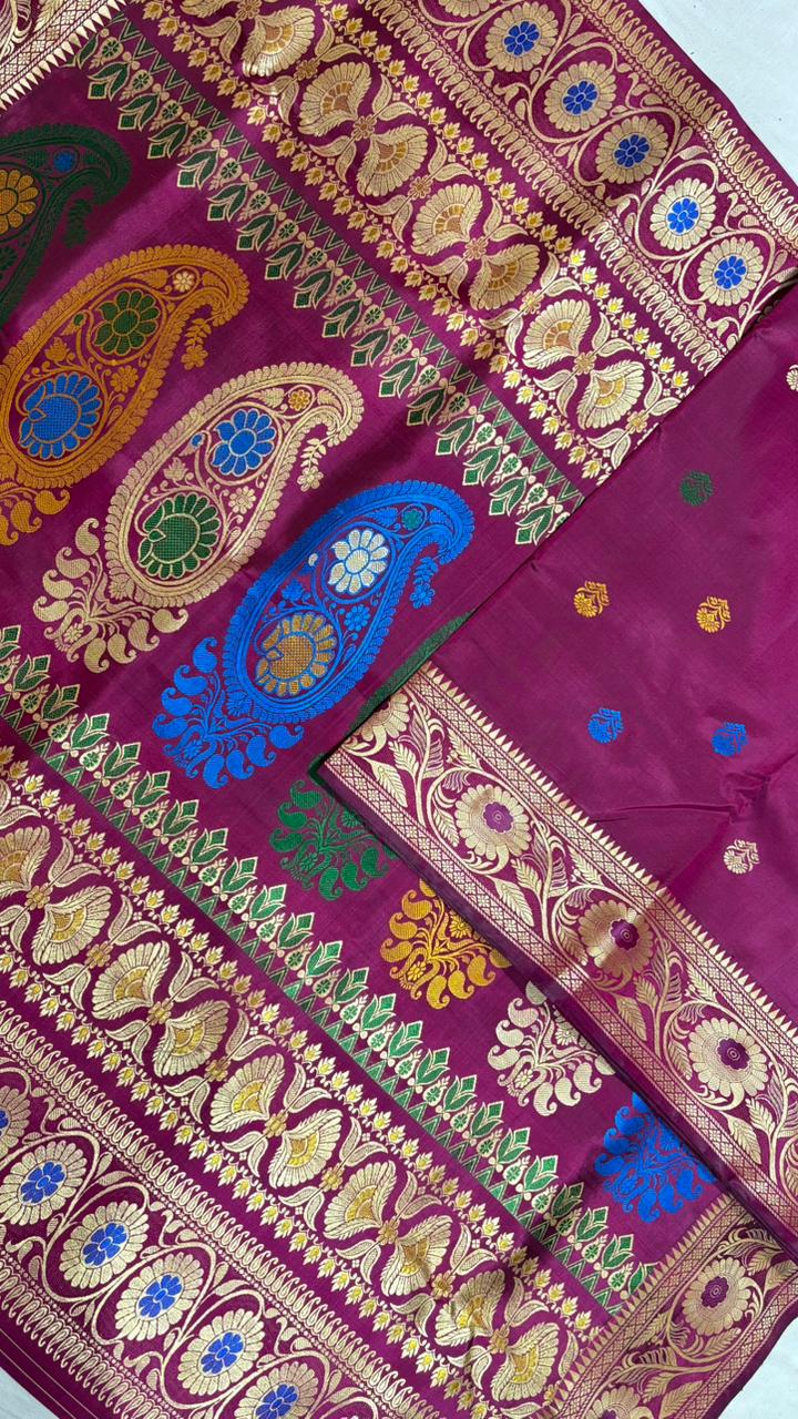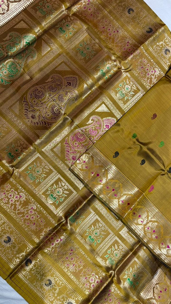 Exclusive collection of Bishnupuri Check Zari Tussar Dye Worked with Hand-Kalamkari Blouse Piece