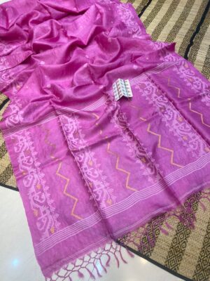 Pure tussar silk alfi & tilfi and body buta work border design saree with rich pallu and blouse